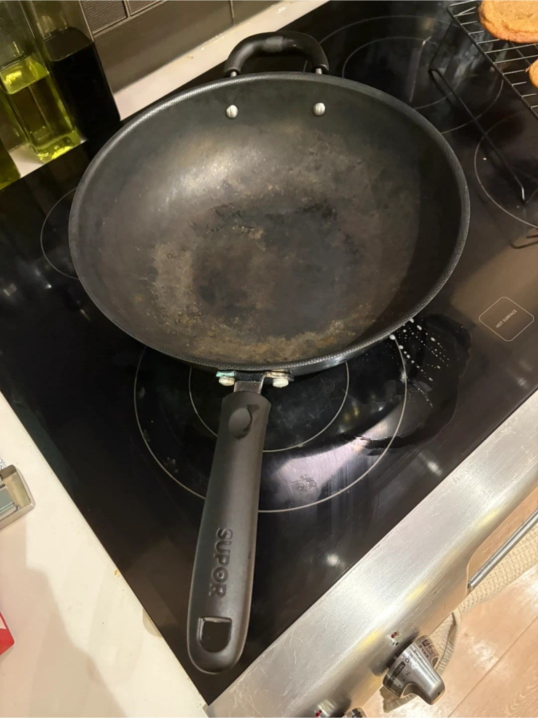 Selling a used wok pan. It has some signs of wear and tear, but it's still functional. Perfect for stir-frying and other cooking needs!