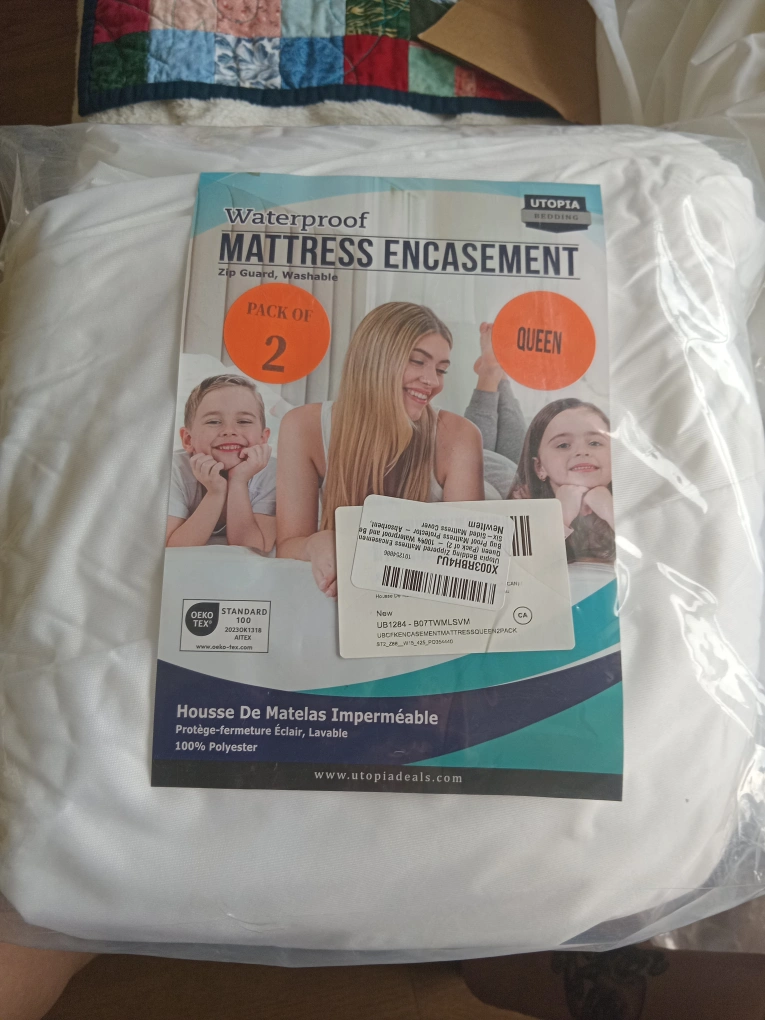 I'm selling a brand new Utopia Bedding waterproof mattress encasement for a queen size bed. It's still in the original packaging. It's a zip guard and washable, made of 100% polyester. Originally bought for $36.99