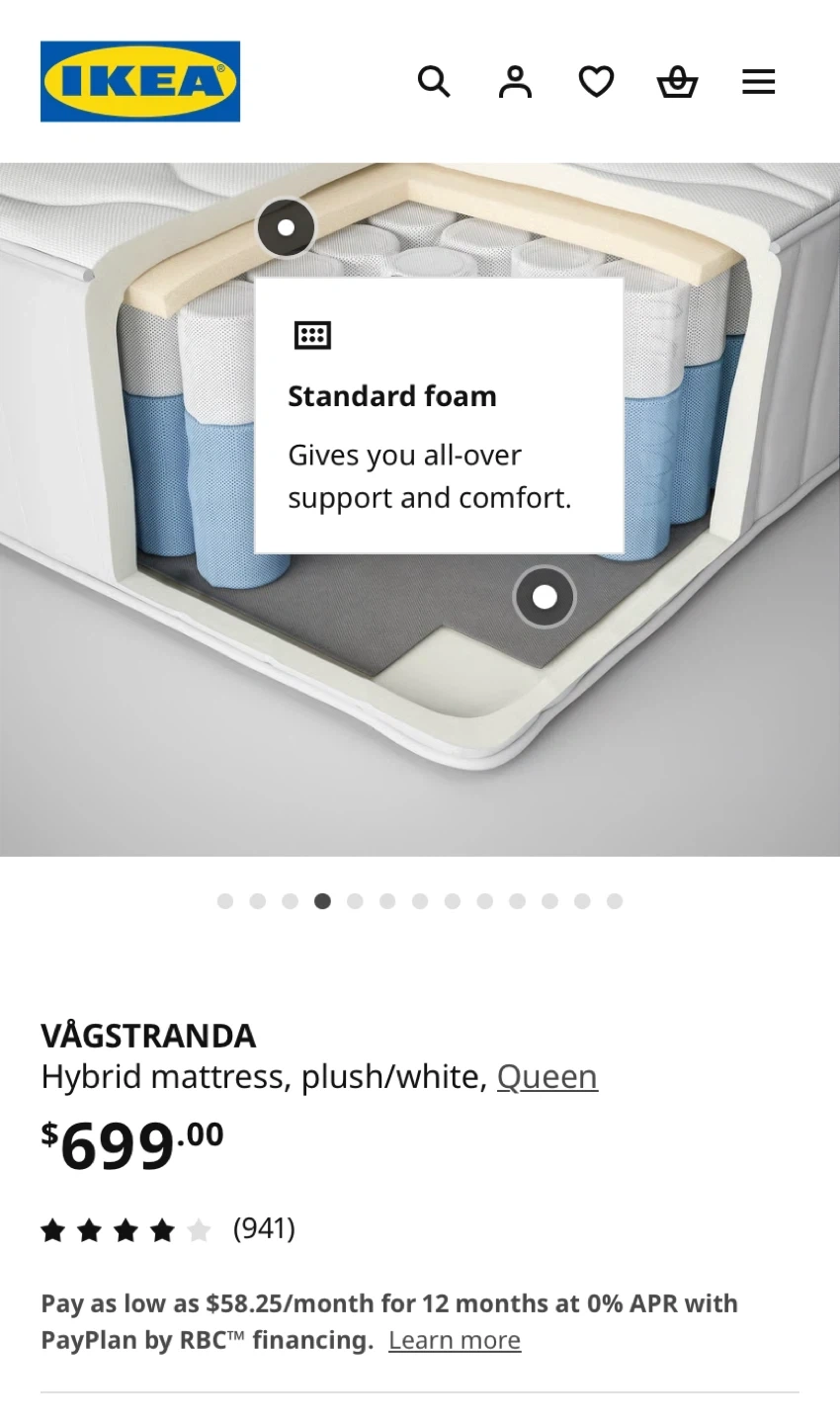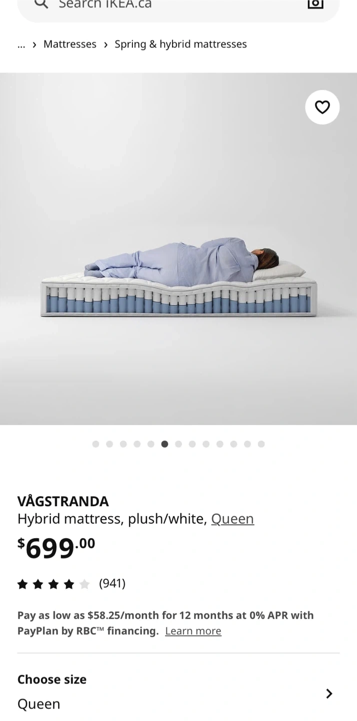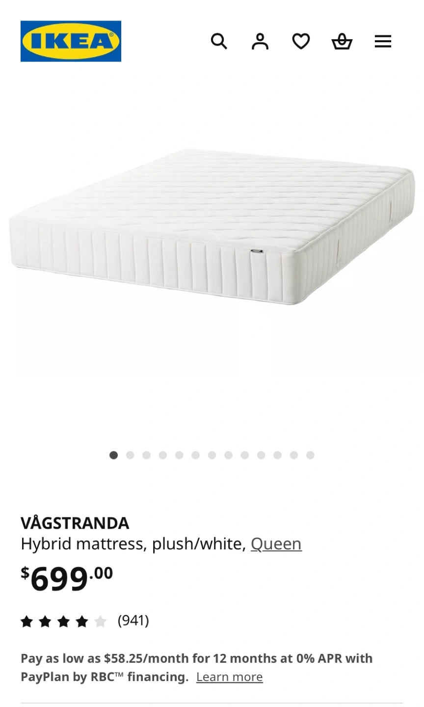 Selling a Queen size IKEA VÅGSTRANDA hybrid mattress in plush white! This mattress offers all-over support and comfort with its standard foam. Dimensions are 202 cm (79 1/2 ") length, 152 cm (59 7/8 ") width, and 28 cm (11 ") thickness. Originally bought for $699 pick up near surrey centre station delivery available for extra.