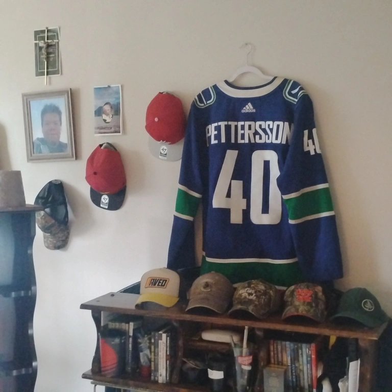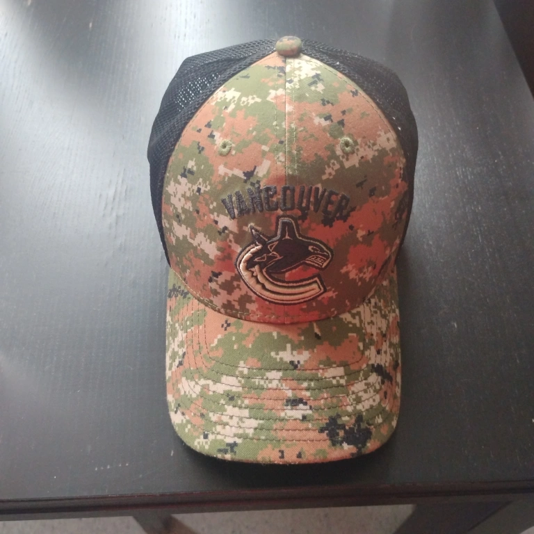 Selling a Vancouver Canucks NHL Fanatics hat. It's a Flex Pro style and size L/XL. The hat features a camouflage pattern with a black mesh back. A great way to show your Canucks pride! it just hangs with my other caps too big for my head