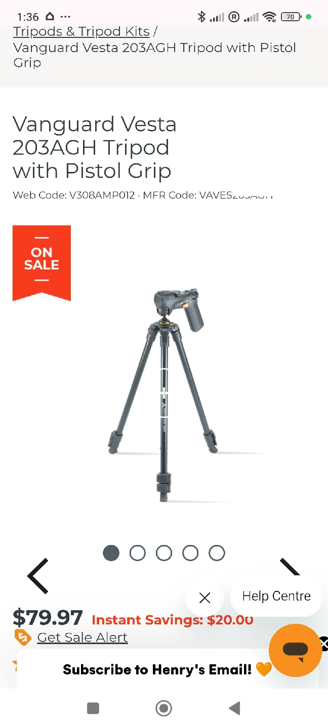 Selling a Vanguard Vesta 203AGH tripod with a pistol grip. It's in great shape and ready for your next photography adventure! It's an amazing tripod if you also take videos . Retails for $79.97.