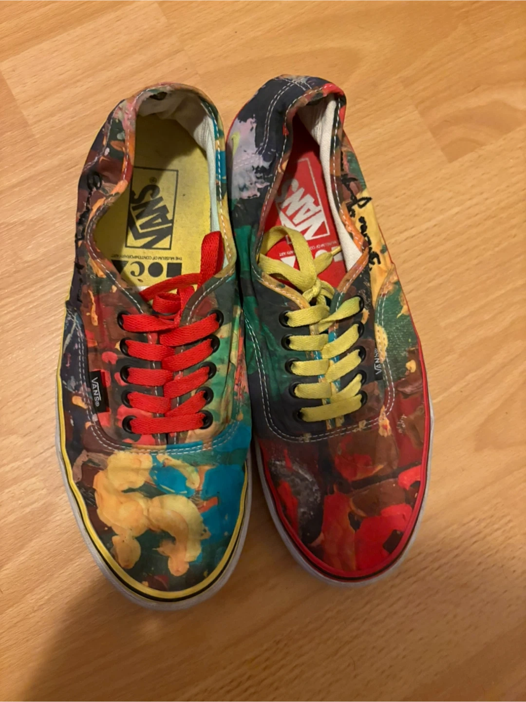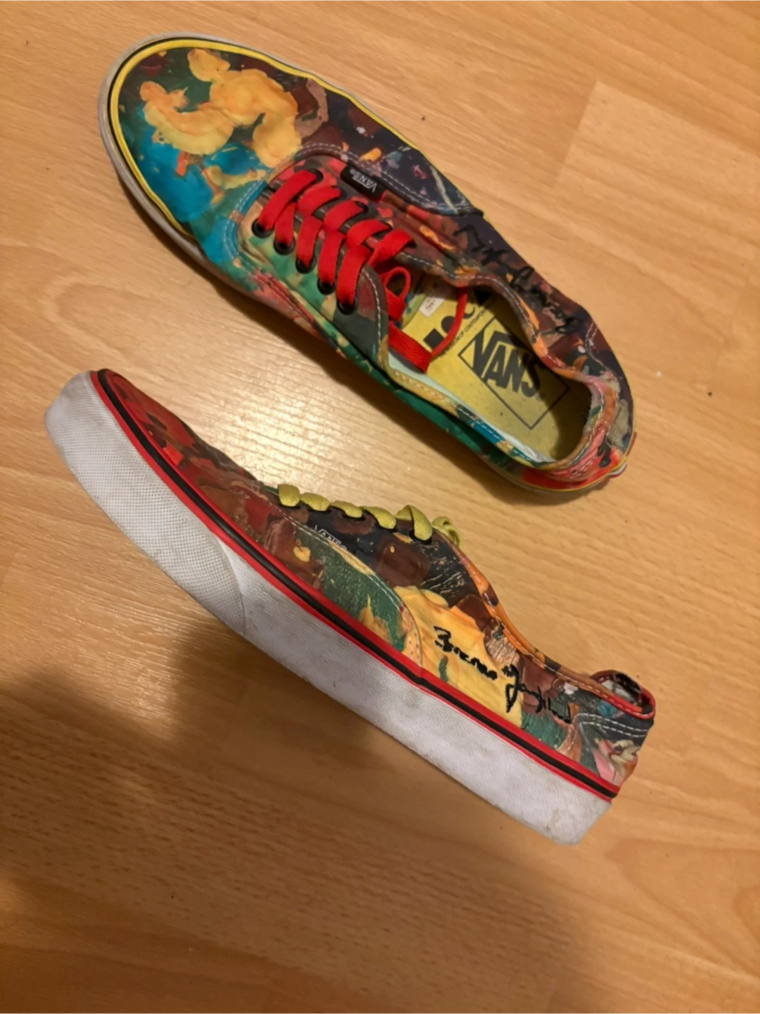Cool pair of Vans sneakers with a MOCA (Museum of Contemporary Art) design! They've got a unique, artsy look with vibrant colours and a low-top style. Size is not indicated but please refer to the pictures Size-9.5