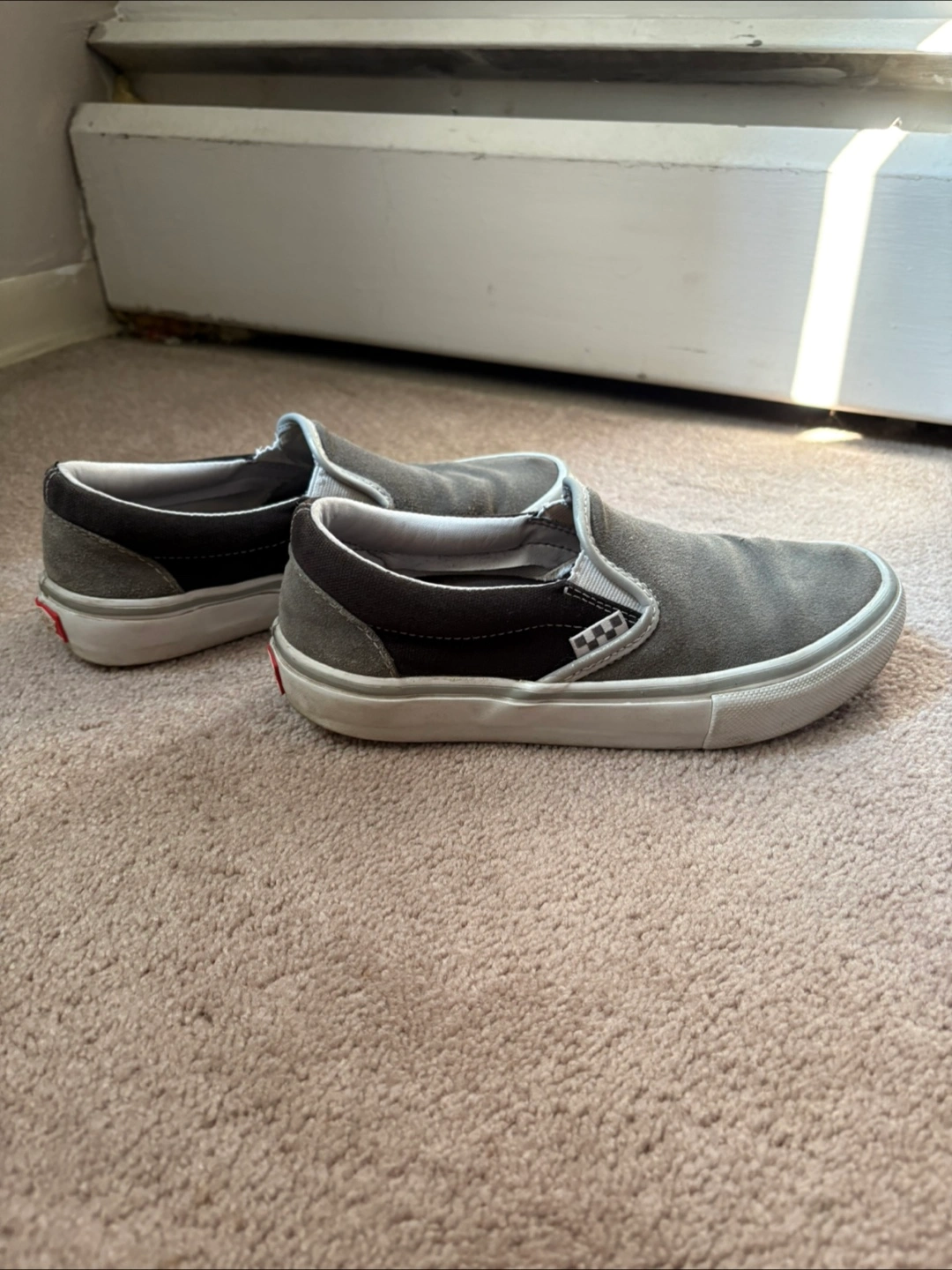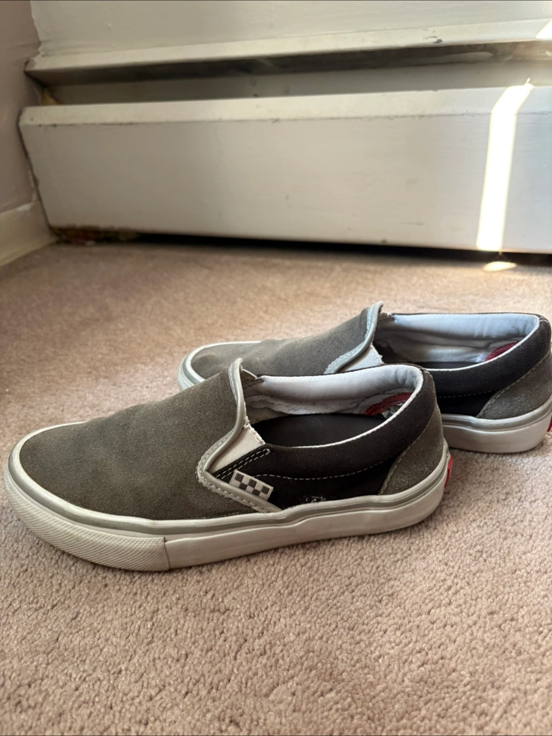 Selling a pair of Vans Skate Slip-On shoes in grey! They're in decent condition and ready for a new home. Size is US 7