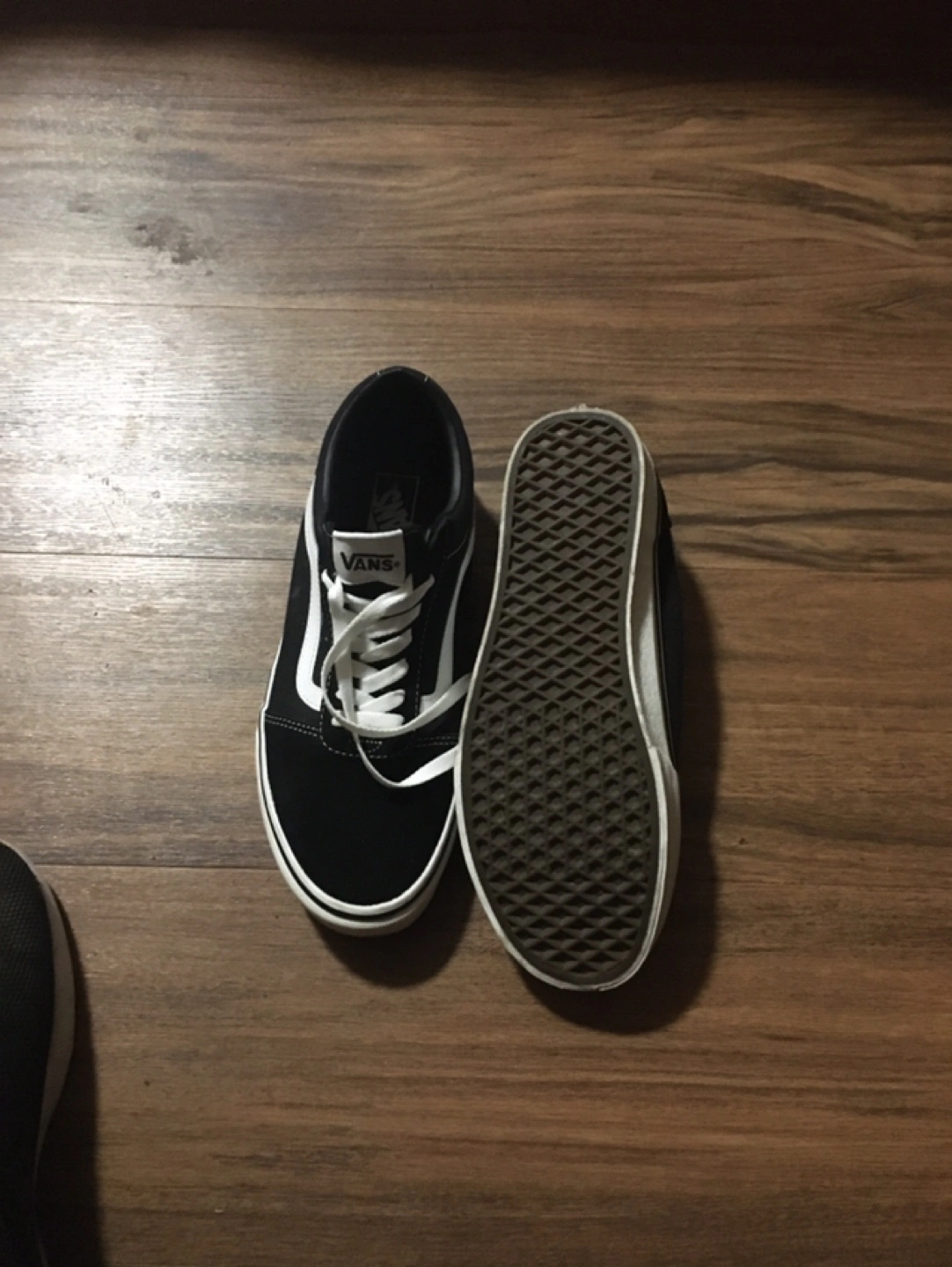 Selling a pair of Vans Ward sneakers in black and white. They're in great shape and ready for a new home! These are a classic style that goes with everything. They feature the iconic Vans side stripe and a comfortable fit. Perfect for everyday wear!
