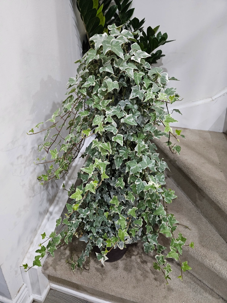 I'm selling a beautiful variegated English ivy plant. It's a lovely addition to any home and easy to care for. It would look great in a hanging basket or on a shelf. It's in great condition and ready for a new home