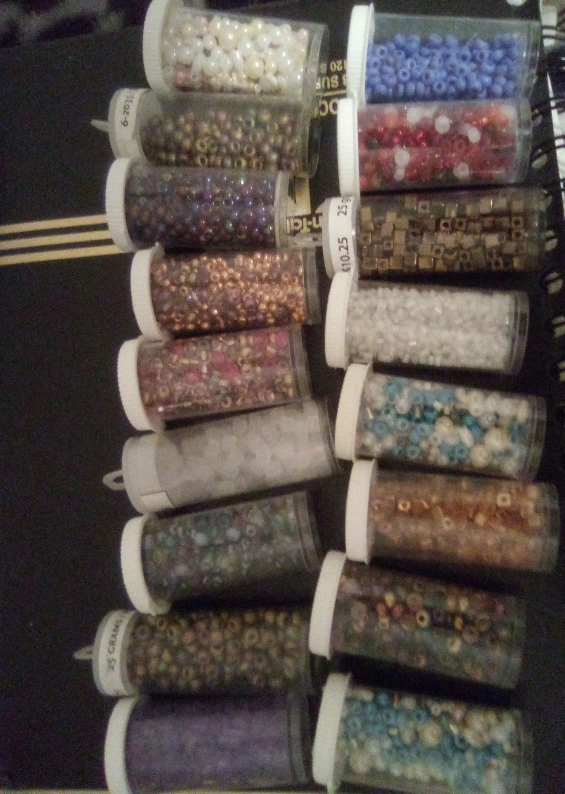 I have a variety of seed beads for sale in different colours and sizes. Each tube is labeled with '25 grams'. Perfect for your crafting projects! (19)