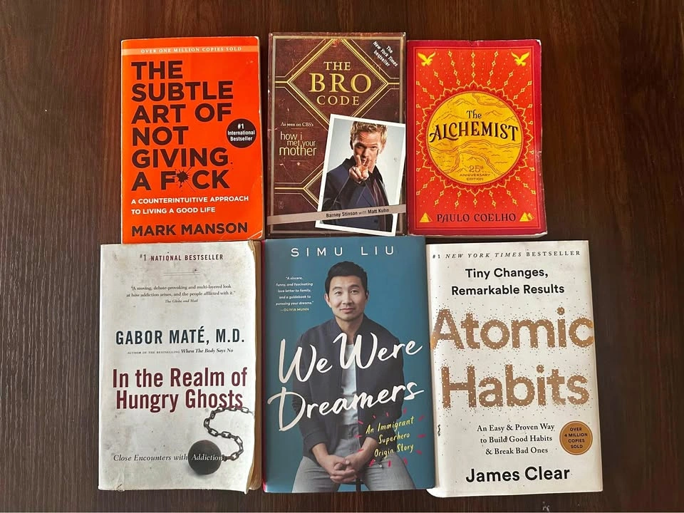 Various books for sale! The Bro Code- $5 In the Realm of Hungry Ghosts- $10 We were Dreamers (Hardcover)- $15 The Alchemist- SOLD The Subtle Art of Not Giving a F*ck- SOLD Atomic Habits (Hardcover)- SOLD