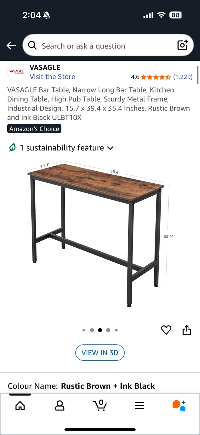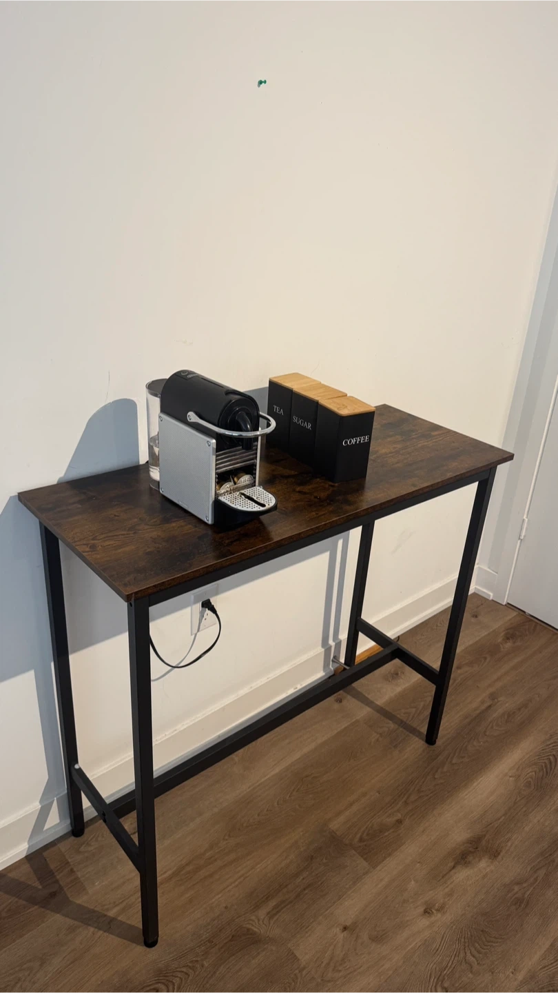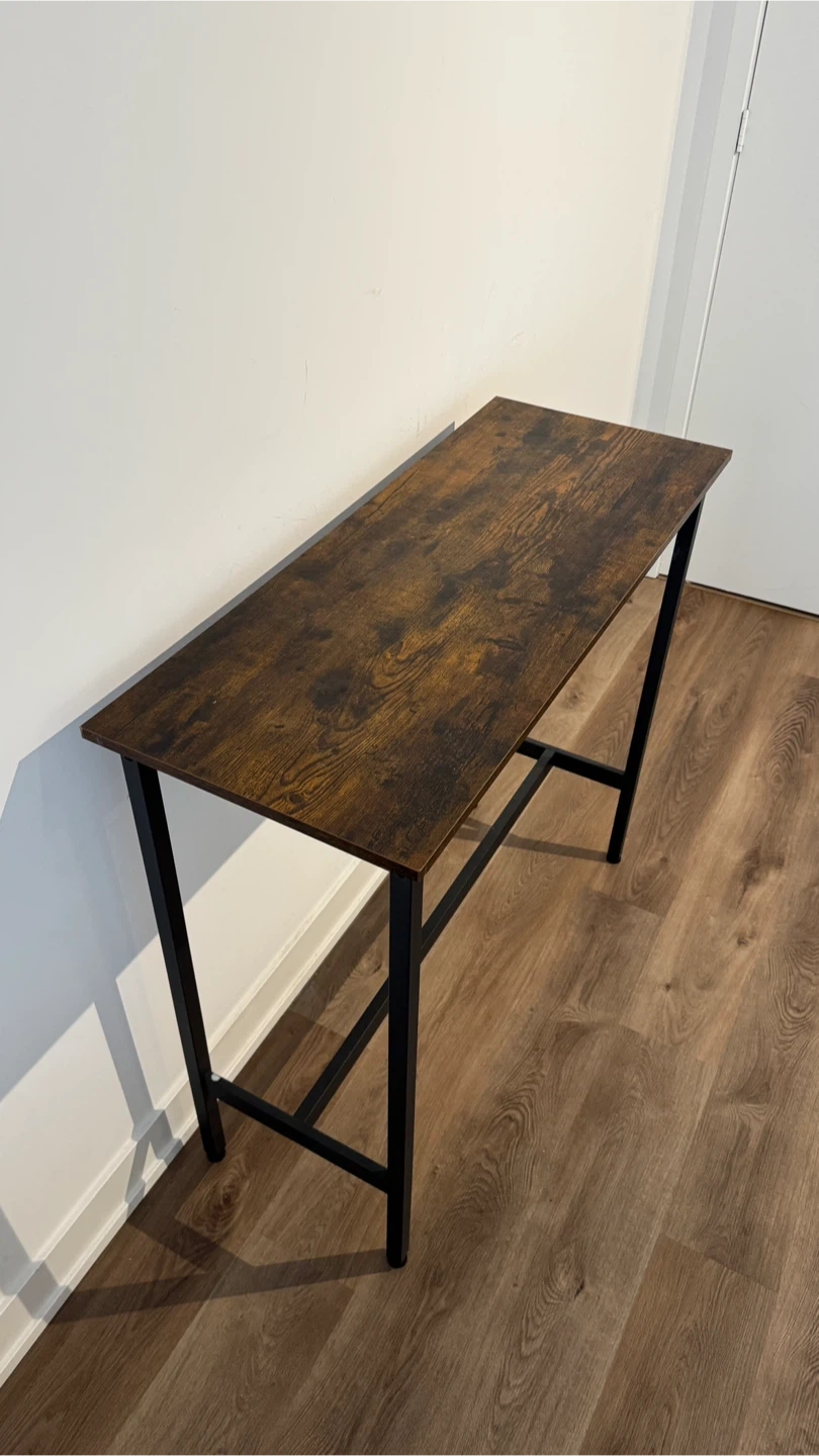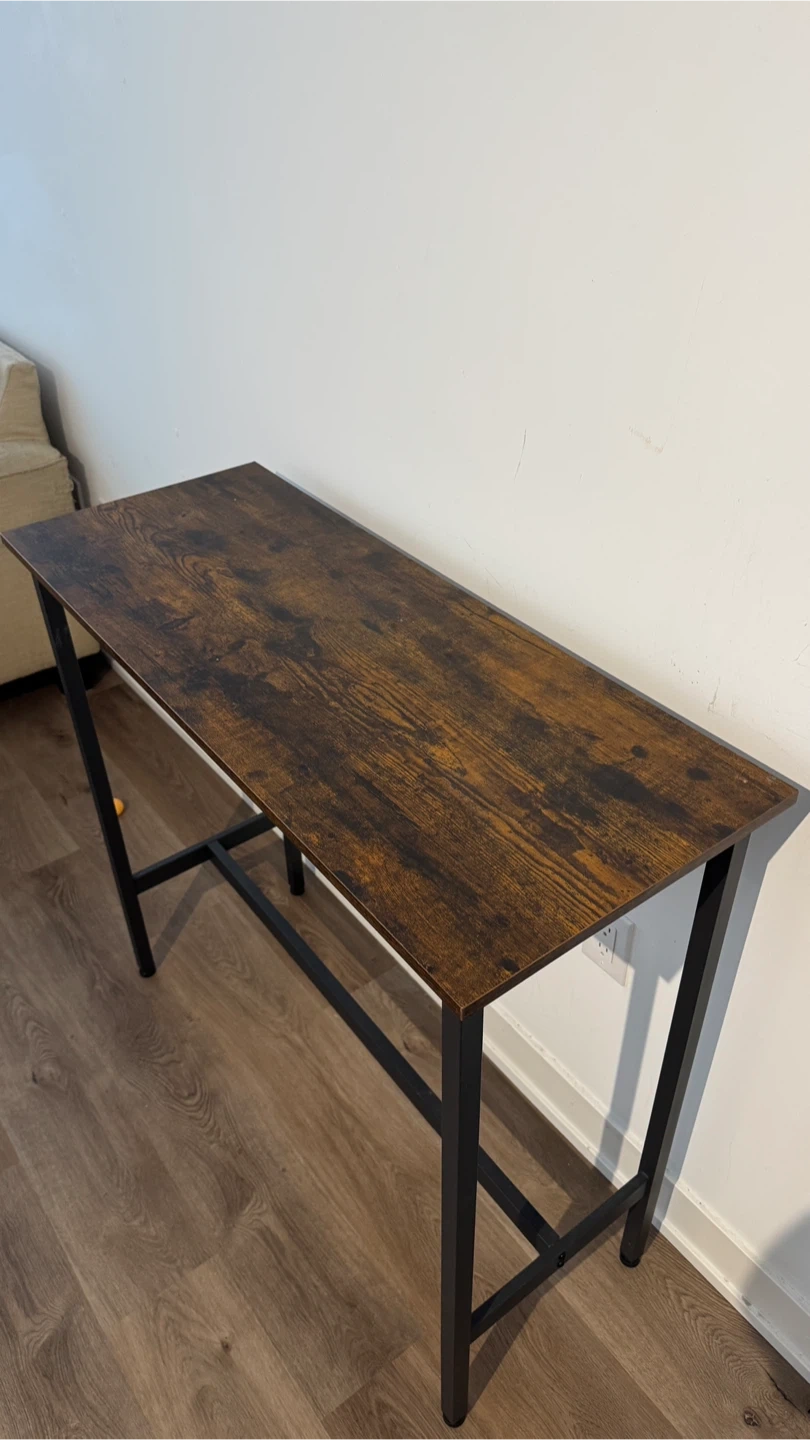 LIKE NEW - from amazon. Selling a VASAGLE bar table in rustic brown and ink black! This narrow, long bar table is perfect as a kitchen dining table or a high pub table. It features a sturdy metal frame and industrial design. The dimensions are 15.7 x 39.4 x 35.4 inches. Originally bought for $79.79 https://a.co/d/fm6ChEv
