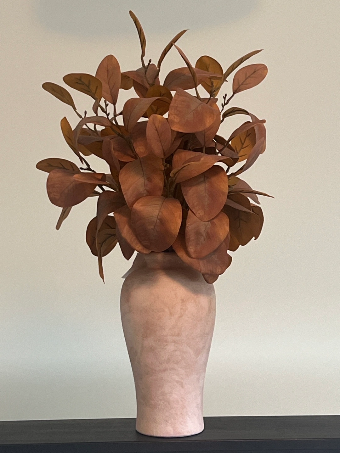 A lovely vase with faux copper leaves, perfect for adding a touch of warmth to your home decor
