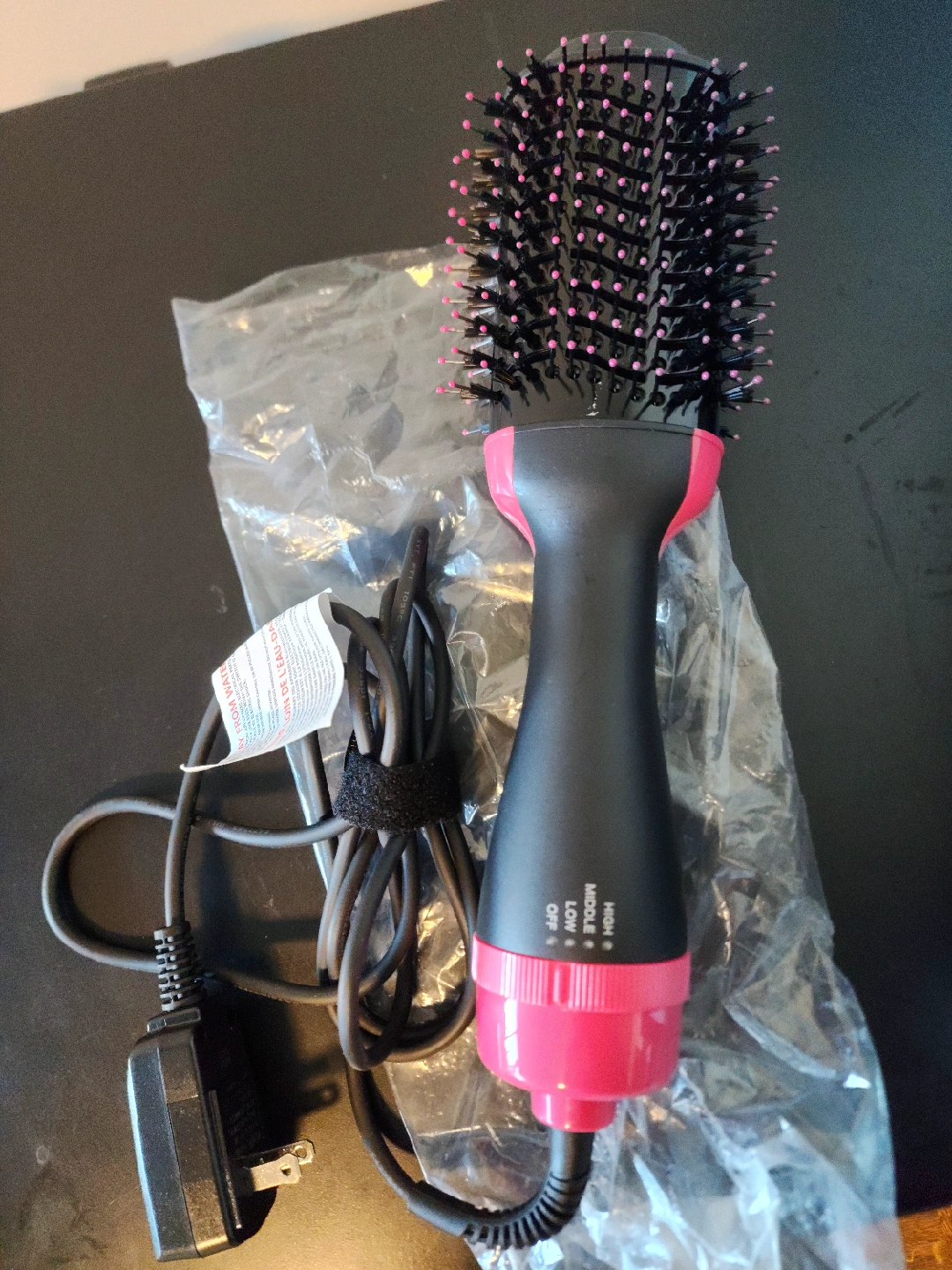Multi-Function Hair Dryer Brush: This hot air brush combines a hair dryer, straightener, and curler in one tool. It dries, smooths, and adds volume or curls simultaneously, making it easy to create salon-quality styles at home. Damage Protection with Negative Ions: Infused with negative ion technology, this hair dryer brush emits millions of ions to break down water molecules quickly, reducing drying time, frizz, and static. Leaves hair smooth, shiny, and healthy-looking. 3 Heat & Speed Settings: Features three adjustable temperature settings (High, Medium, Low) to suit different hair types and styling preferences. The rotary switch at the base allows easy and intuitive control while in use. Tangle-Free 360° Swivel Cord: Designed with a flexible, 360° rotating power cord that resists tangling and increases maneuverability. The ergonomic handle ensures a comfortable, secure grip during use. Advanced Safety Features: Equipped with an ALCI safety plug that automatically cuts power in the event of an electrical fault, providing added protection. This product is backed by a 1-year manufacturer's warranty for worry-free use.