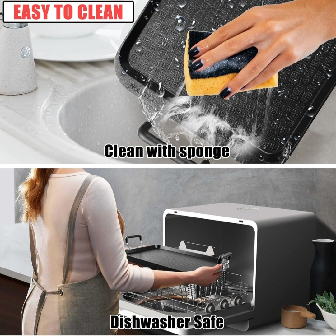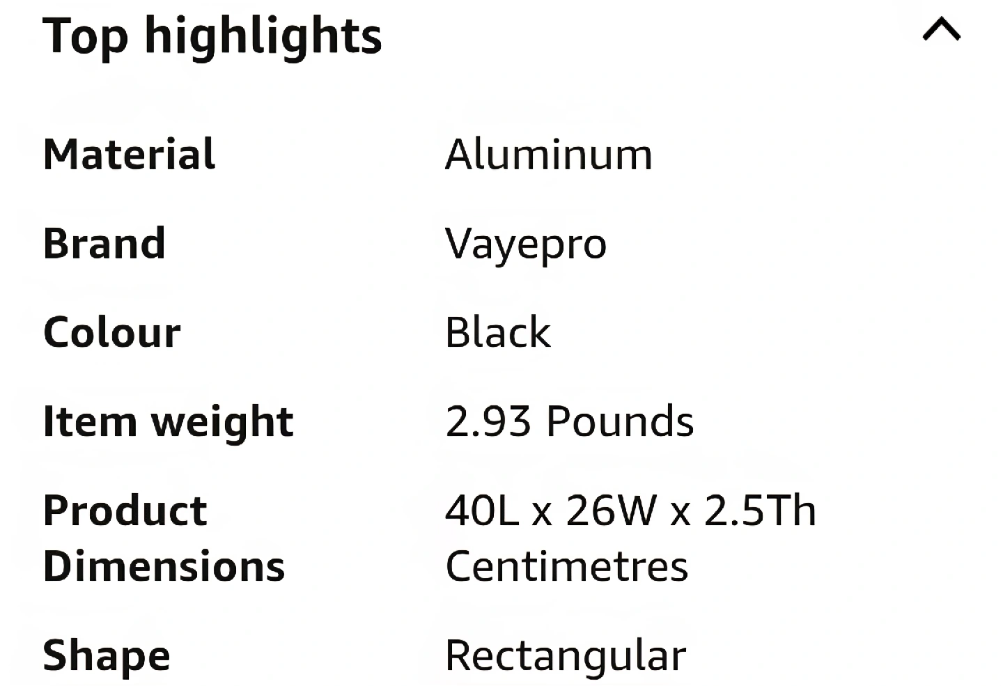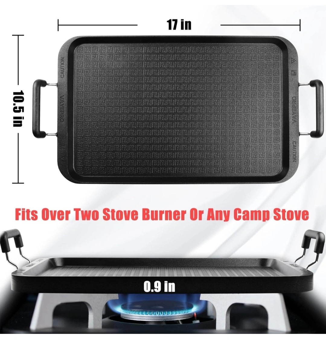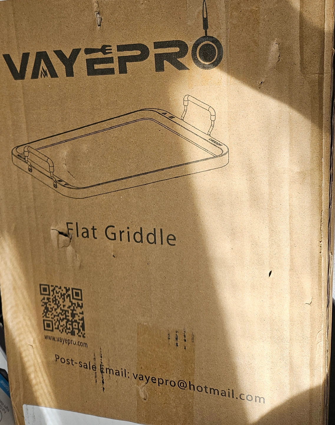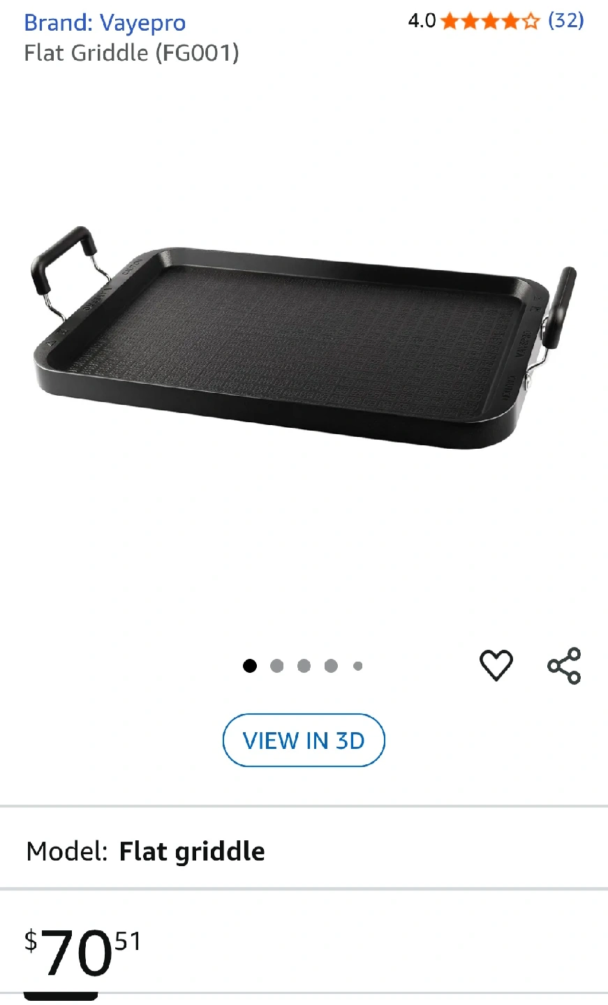 Selling a Vayepro Flat Griddle (FG001) in black! It's made of aluminum and is super easy to clean. Key features: - Dimensions: 40L x 26W x 2.5Th centimetres - Weight: 2.93 Pounds - Rectangular shape It's also dishwasher safe, making cleanup a breeze