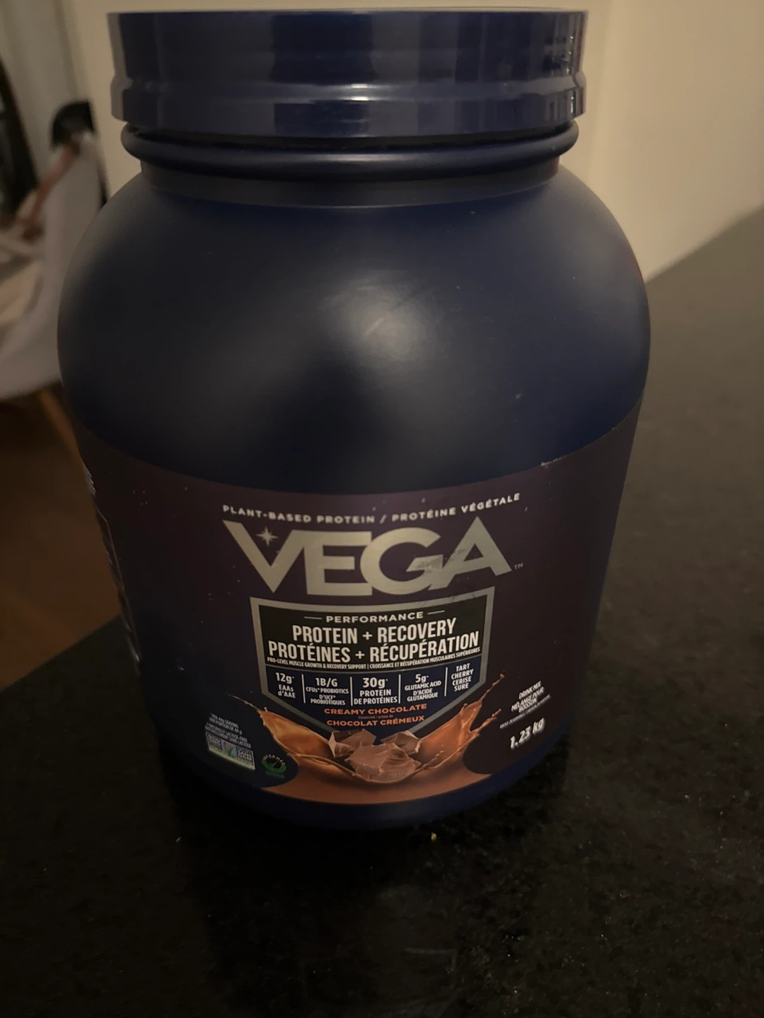 Selling a container of Vega Protein + Recovery in Creamy Chocolate flavour. It's a plant-based protein. I’ve only had it twice, but it’s not really my thing.