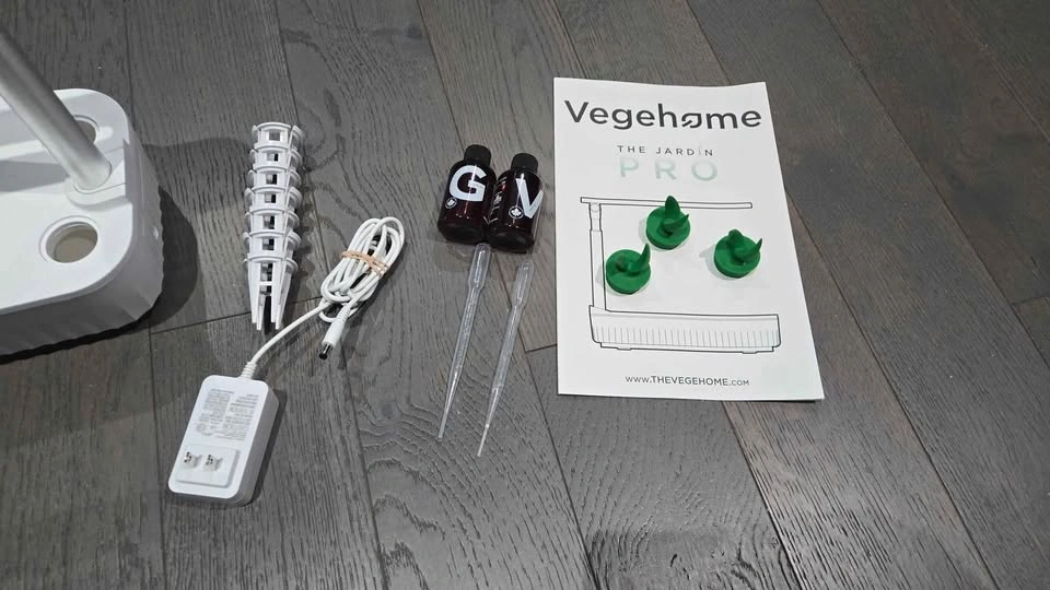Used like new - Vegehome the Jardin Pro. I've used it for about one year, and it has never failed me. Included you'll have 3/4 of the feed bottles, that will last you a long time. (You only need 1ml - 2ml). And some extra pod holder, that you can use to create your own pods.