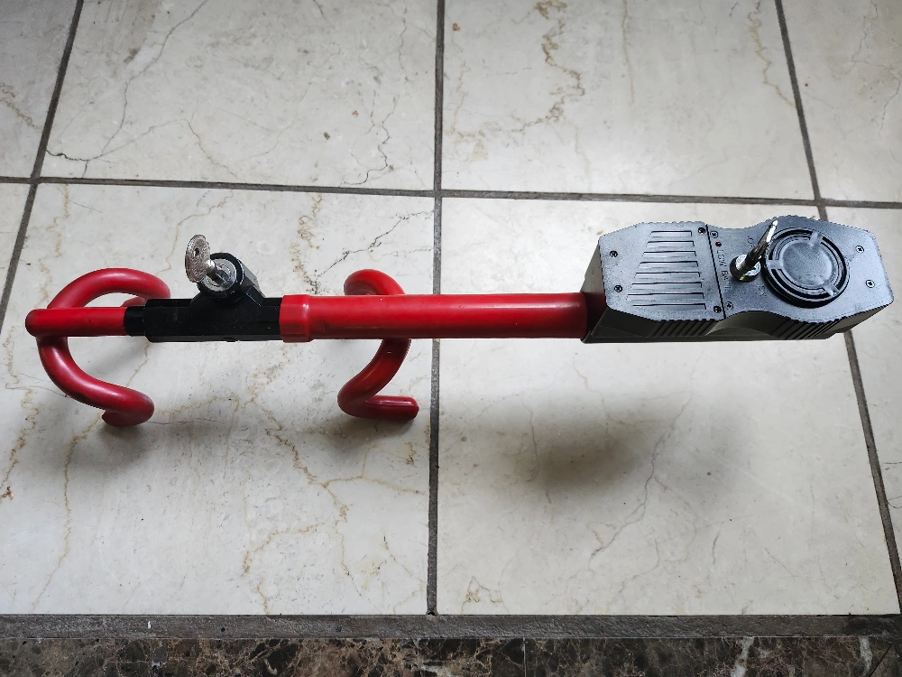 Selling a vehicle steering wheel lock. It's in good condition and *only Wcomes with the one key you see in the photos. Keeps your car safe and secure!