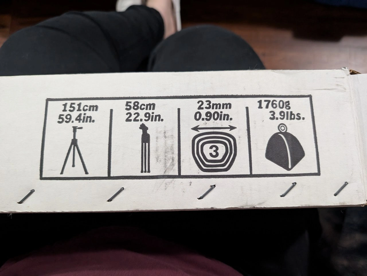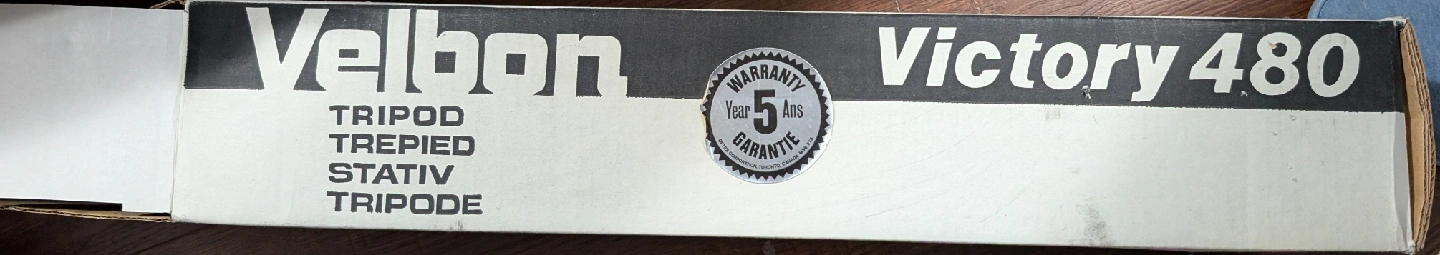 Selling a Velbon Victory 480 tripod. It comes with its original box. The box indicates the tripod is 151cm/59.4in tall when fully extended and weighs 1.76kg/3.9lbs