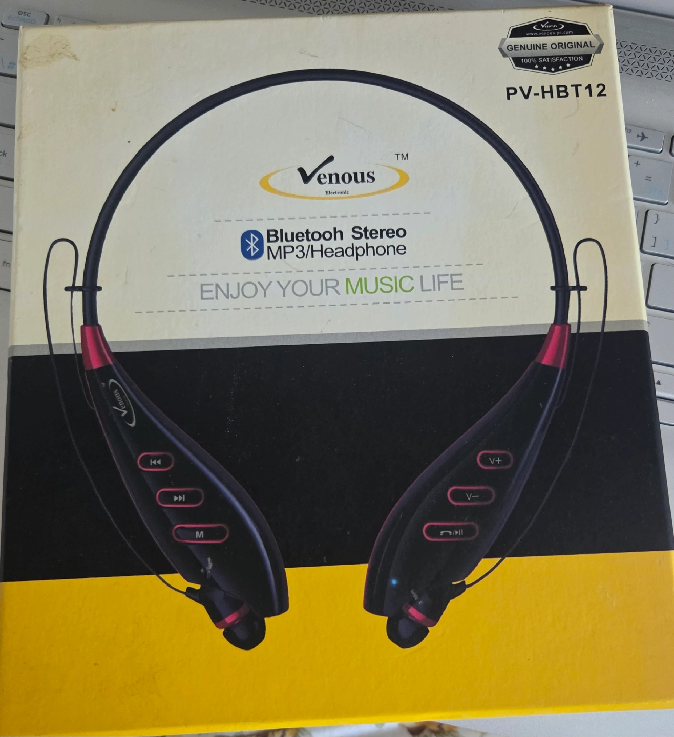 Selling a Venous PV-HBT12 Bluetooth Stereo MP3 Headphone, complete with its original box! Key features include: - Bluetooth version V4.0 - Support agreement: HSP V1.2, HFP V1.6, A2DP, V1.2, AVRCP V1.4 - Operation distance: 10m - Supports 2 mobile phones at the same time - Support APTX audio codec solution - PC interface: USB2.0 - Music format: MP3/WMA - TF card support: 128M-32GB - Rechargeable lithium battery: 200mAh - Music play time: 5 hours Box includes: - PV-HBT12 Earphone - USB cable - User manual