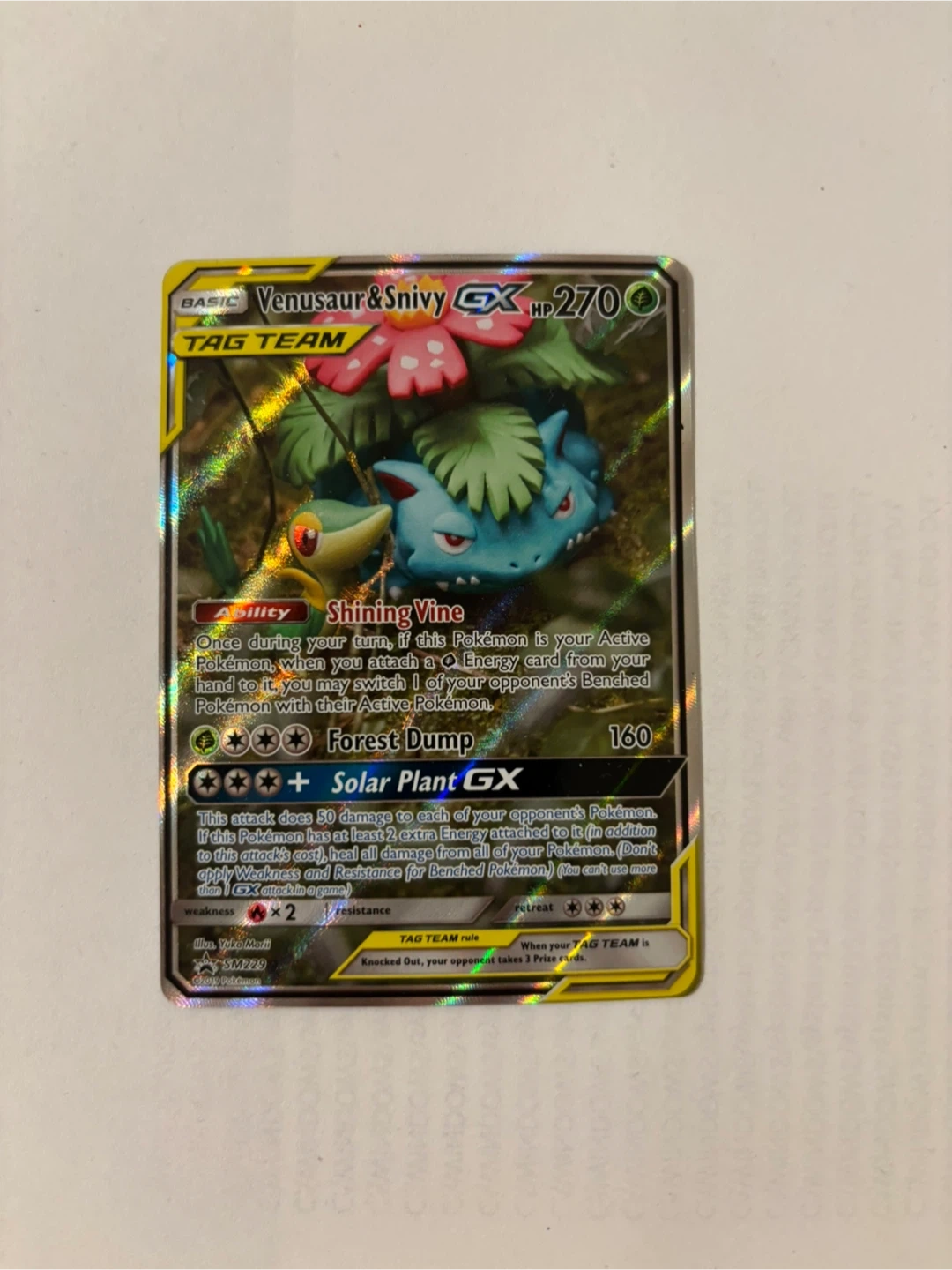 Selling a Venusaur & Snivy GX Tag Team Pokemon card! It's in great condition and ready for a new home. A great addition to any collection
