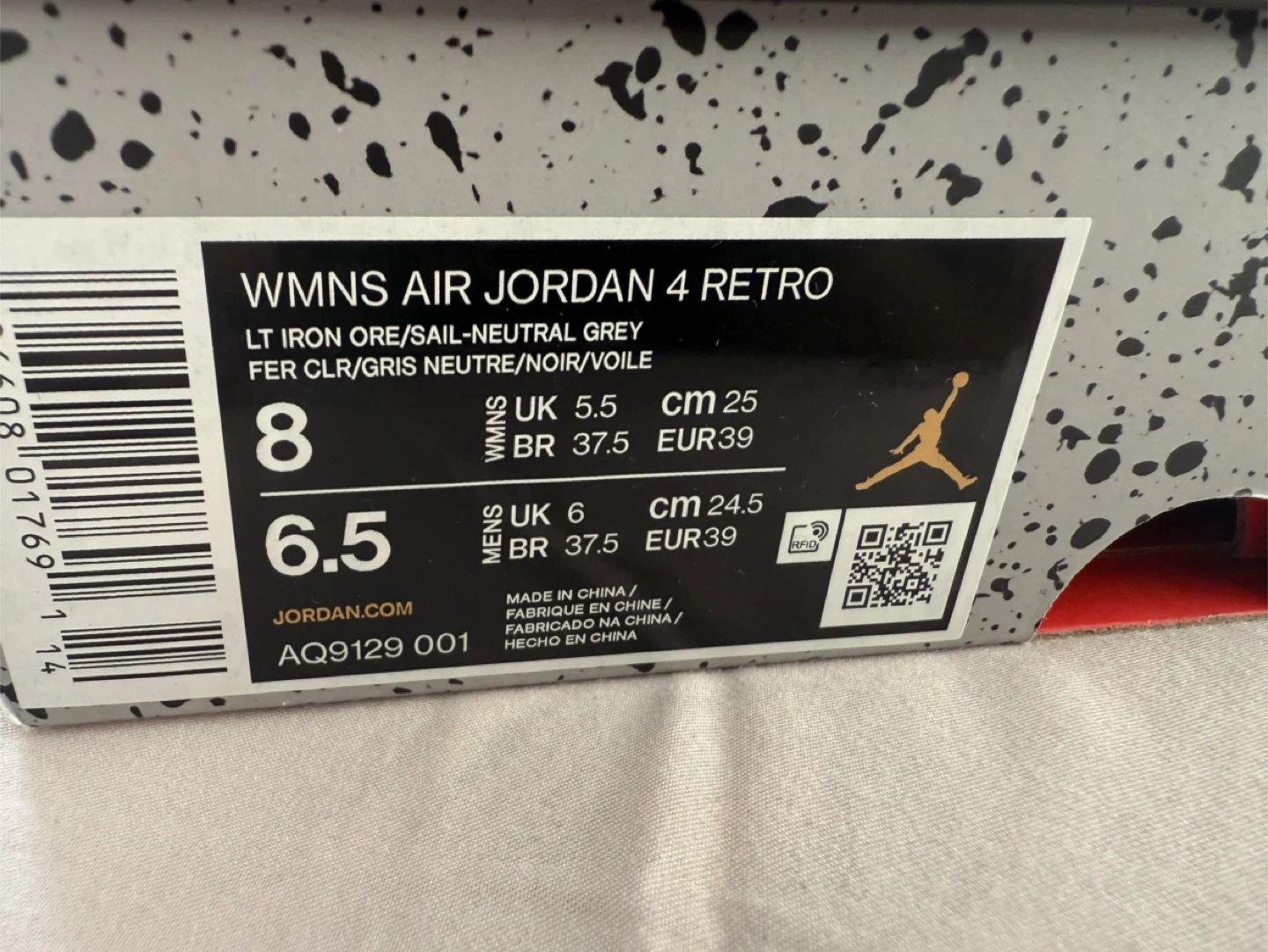 Selling a pair of Women's Air Jordan 4 Frozen Moments. They are a size 8 womens/6.5 mens. Comes with the original box! Brand new condition