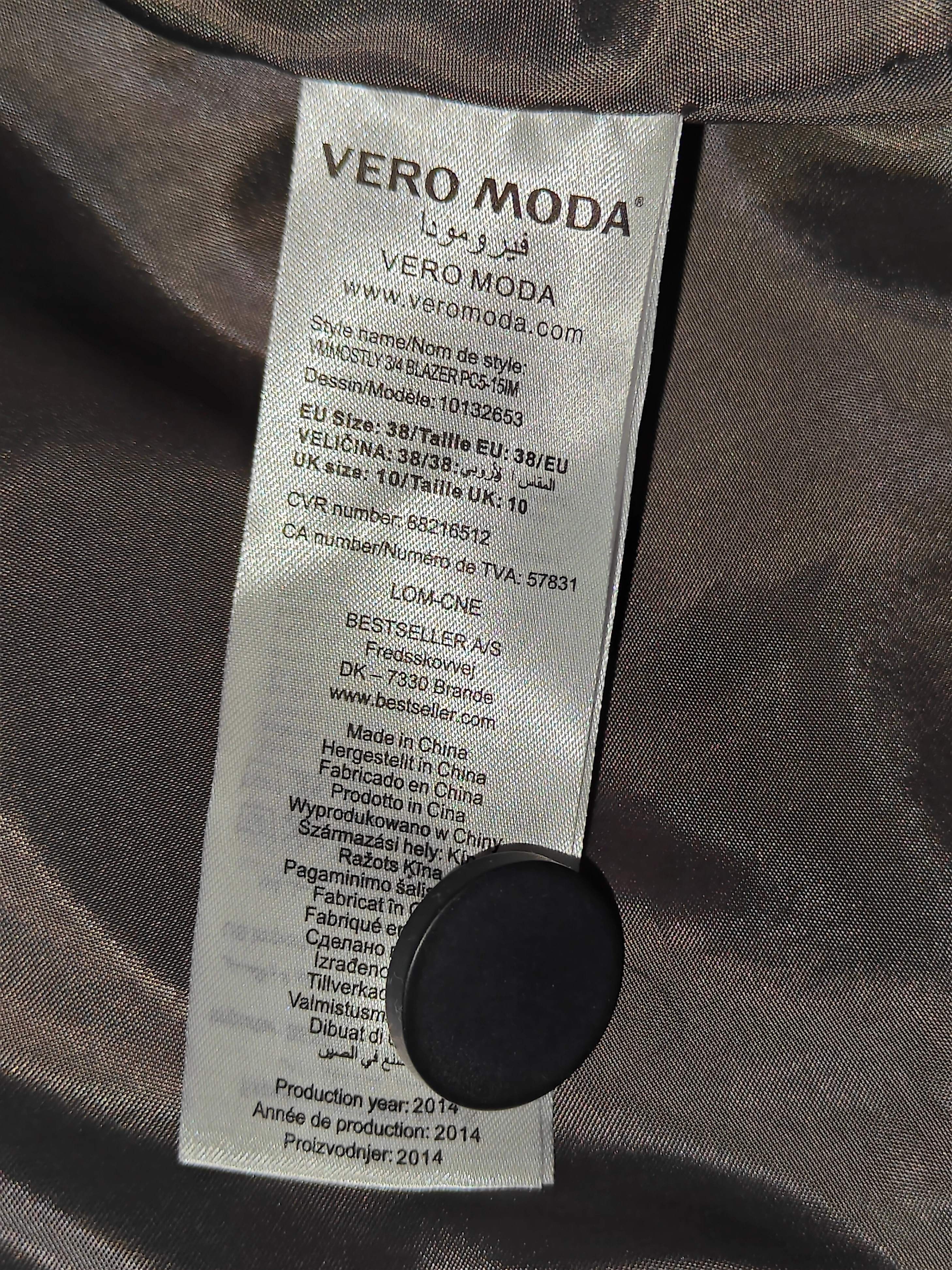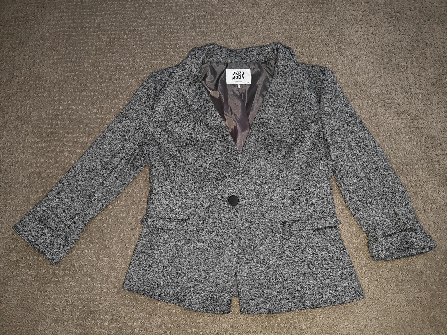 I am selling a VERO MODA Woman Blazers / Dress Jackets / Workwear Suit Jacket in used, excellent condition. Only wore a couple times. No holes, rips, or stains. Colour: Black & White Pepper Size: EUR 38 / US 8 / Women's Medium Dimensions: * Shoulder: 16" * Sleeve: 17-1/2" * Length: 21-1/2" Material: * Shell: 81% Polyester / 19% Cotton * Lining: 100% Polyester Comes from a pet and smoke-free environment. Pickup in Mount Pleasant (NW Calgary)