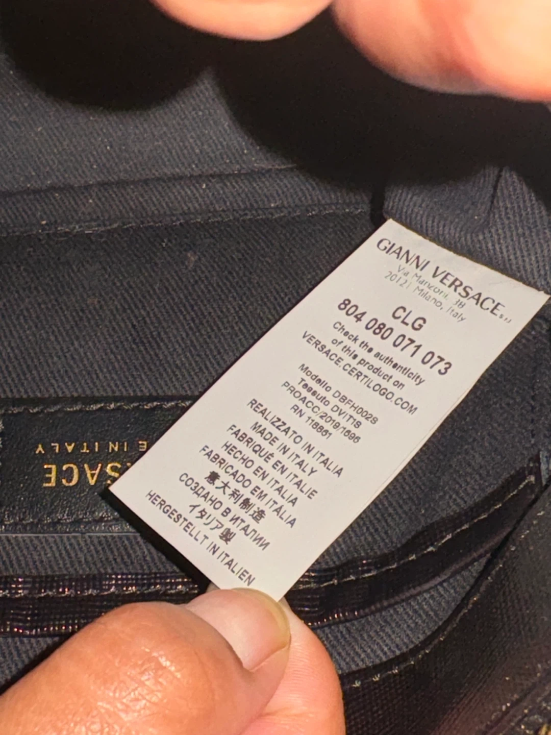 This is a stylish Versace shoulder bag in black leather with a gold chain strap. It's in great condition and perfect for adding a touch of luxury to any outfit. Serious inquiries only, I also have the box and bag.