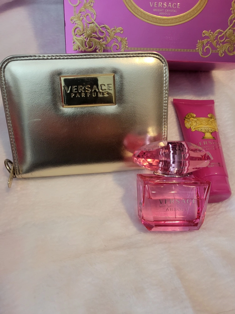 Brand new, only opened to take pictures. Versace Bright Crystal Absolu 3 pc Gift set for Women This GIFT SET includes the following: -3.0 oz / 90 ml EDP Spray -3.4 oz / 100 ml Body Lotion -Golden Purse - Pochette The Golden Purse has a few defects shown in last two pictures.