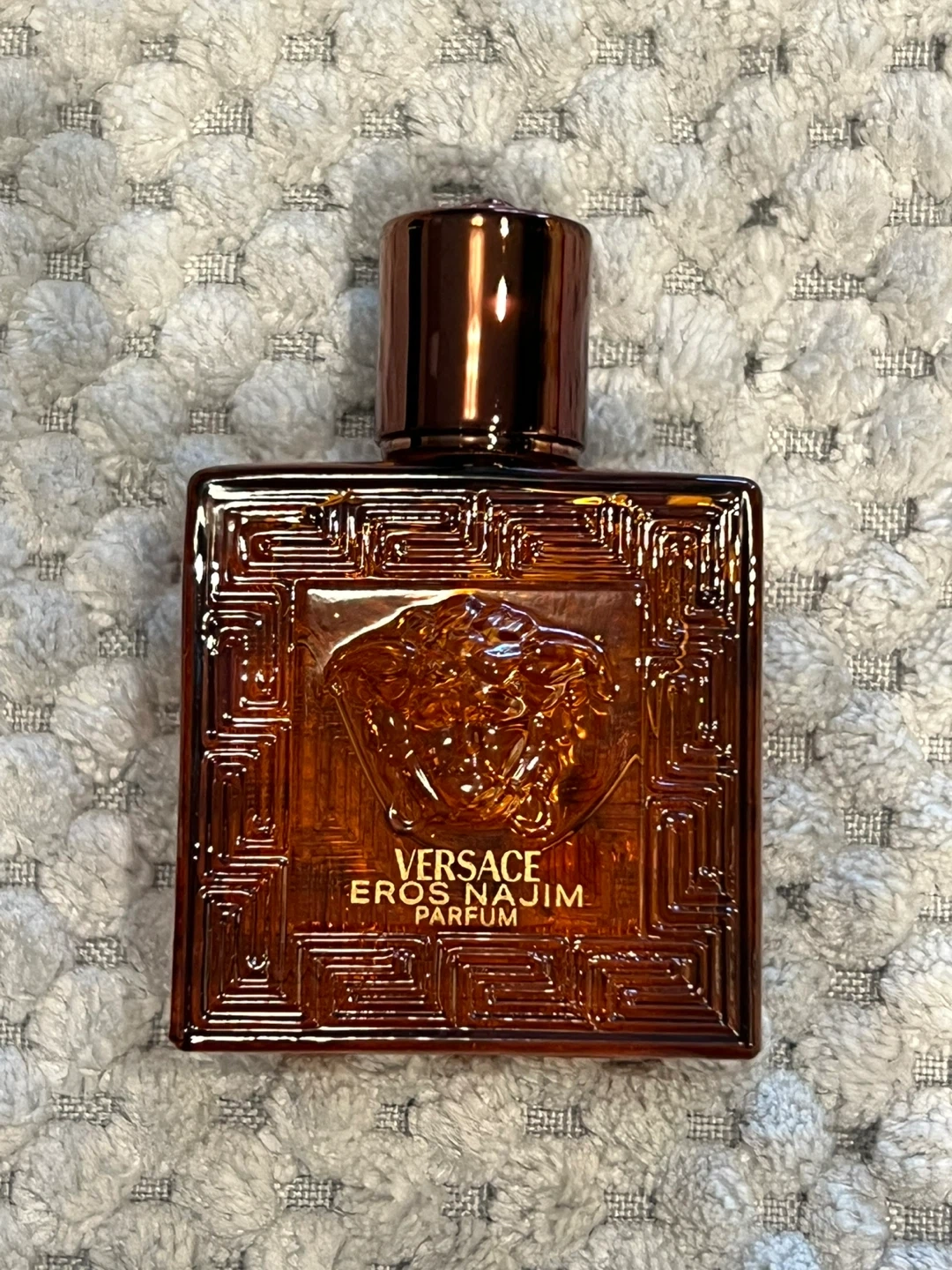 Selling a bottle of Versace Eros Najim Parfum! It's a beautiful fragrance with a unique design. The bottle is in great condition and ready for a new home. 0.17 oz/ 5 ml