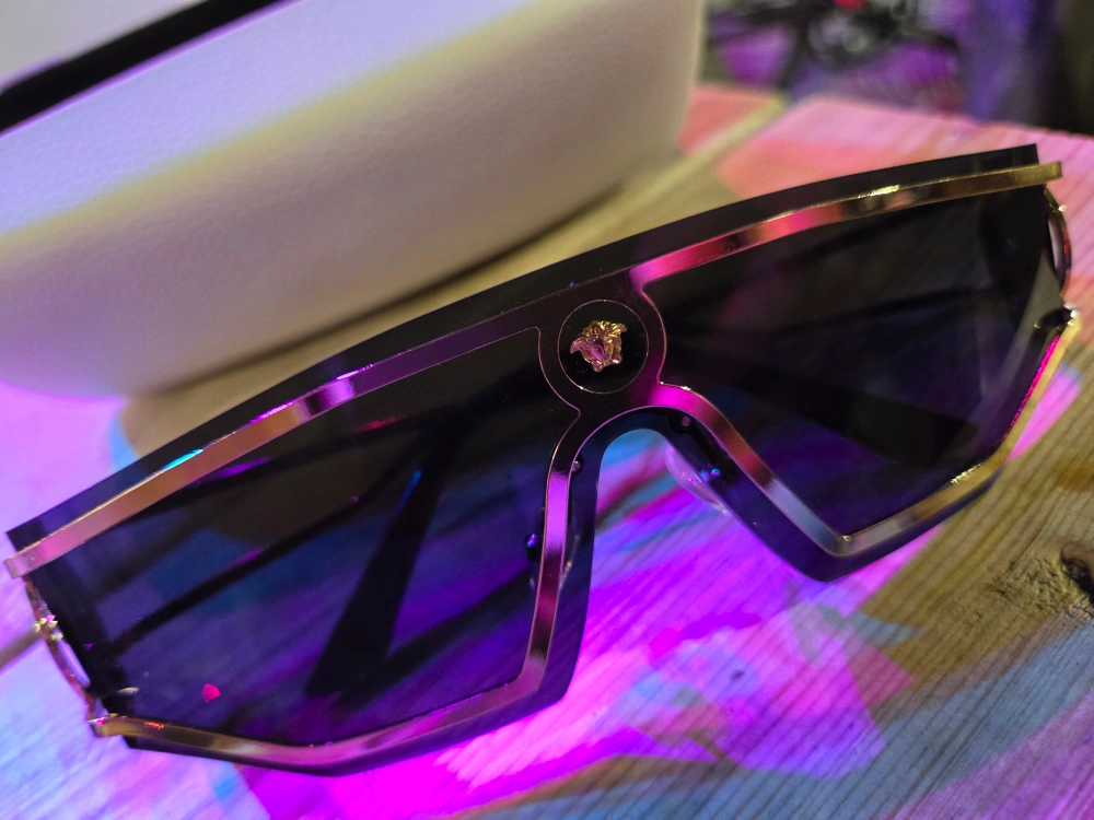 Selling a pair of Versace sunglasses! They come with the original box. The sunglasses feature a sleek black design with gold accents. A stylish accessory to elevate any outfit! original price is $799.99. looking for $550 price negotiable