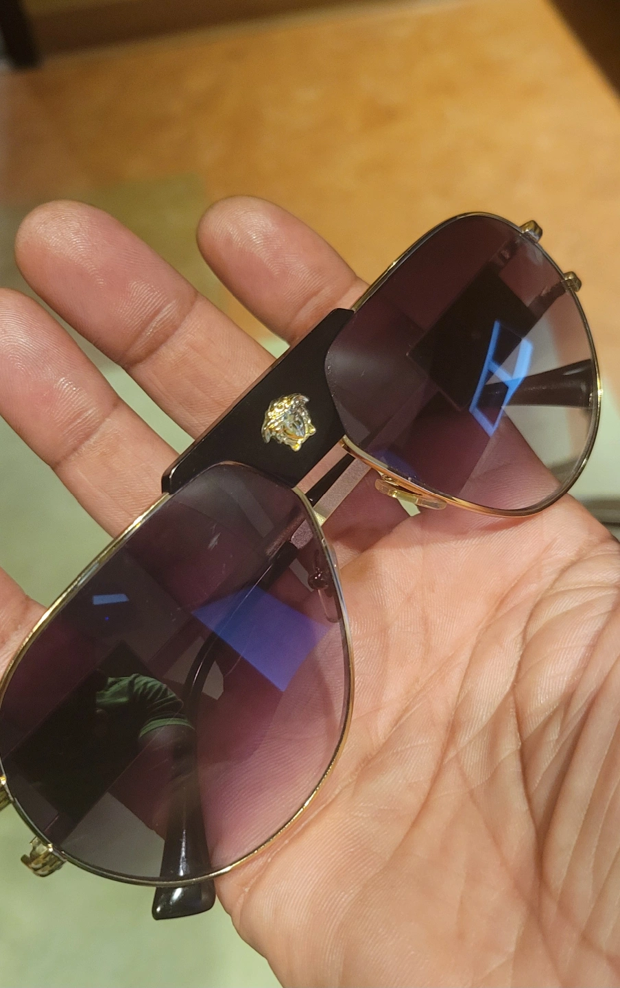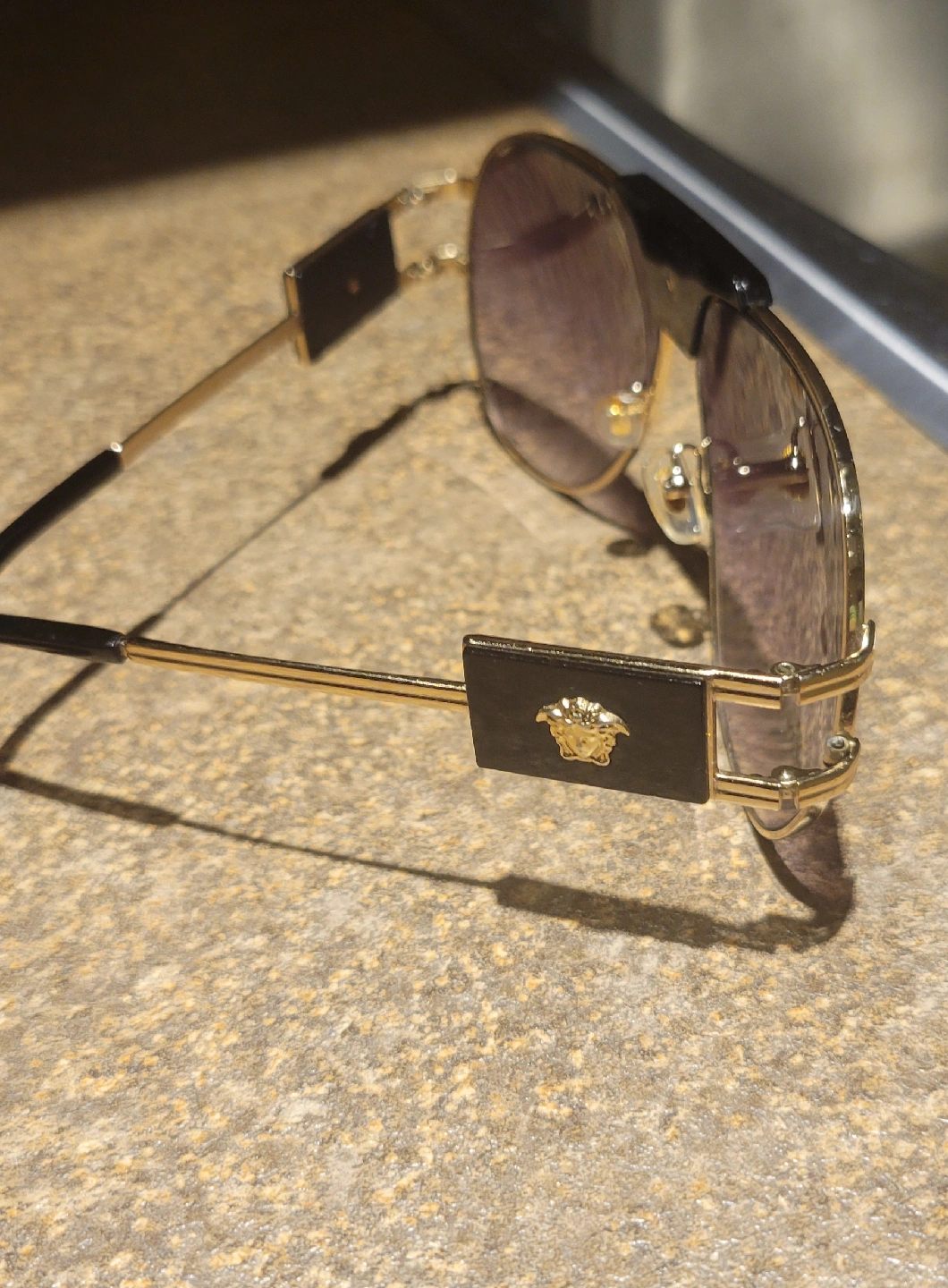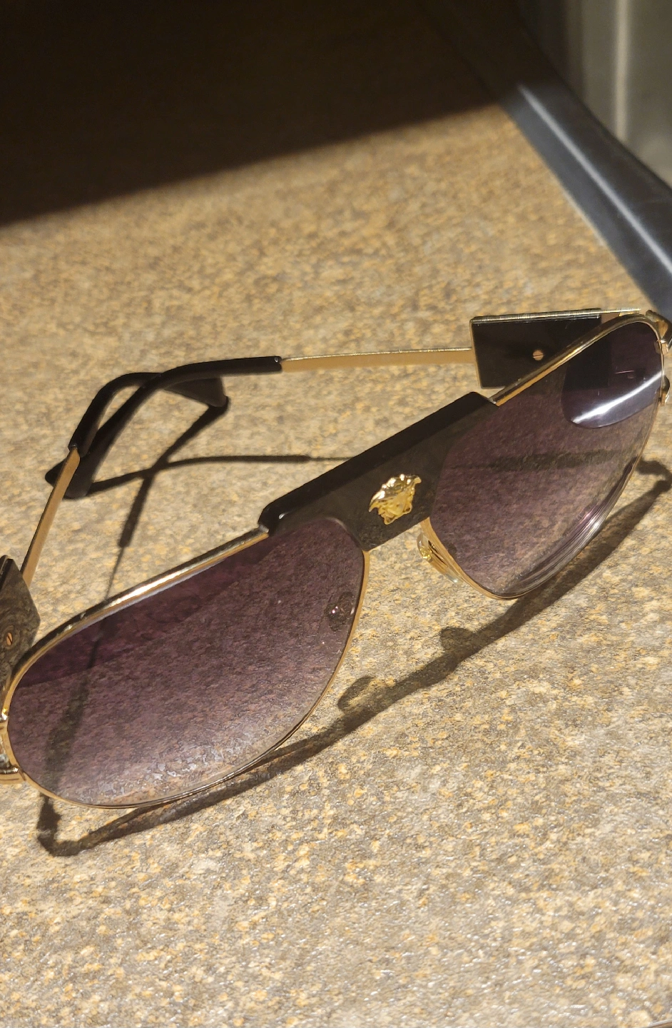 Selling a pair of Versace sunglasses. They have a gold frame and the Versace logo on the side. Great condition! lense are prescription. can replace with own lense. make me a decent offer. no low ballers.