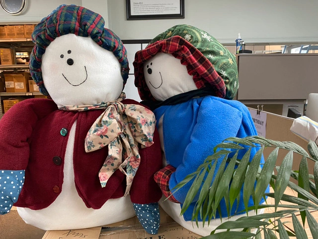 Very large stuffed snowman and snowwoman. 28” high by 24” across. Very fun and an awesome addition to your Christmas decorations! $50 for the pair. Pick up Gravenhurst/Bracebridge