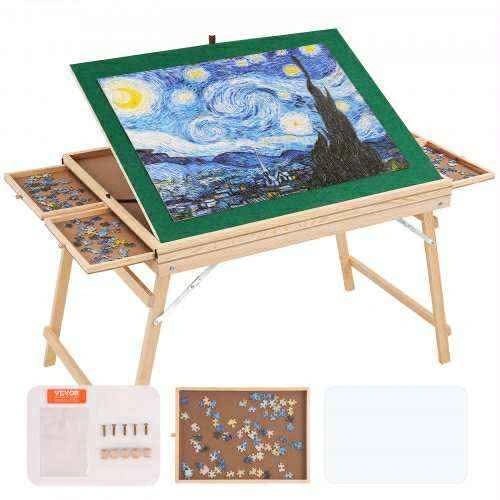 VEVOR 1500 Piece Puzzle Table with Folding Legs, 4 Drawers and Cover, 32.7"x24.6" Wooden Jigsaw Puzzle Plateau, Adjustable 3-Tilting-Angle Puzzle Board, Puzzle Storage System for Adults, Gift for Mom