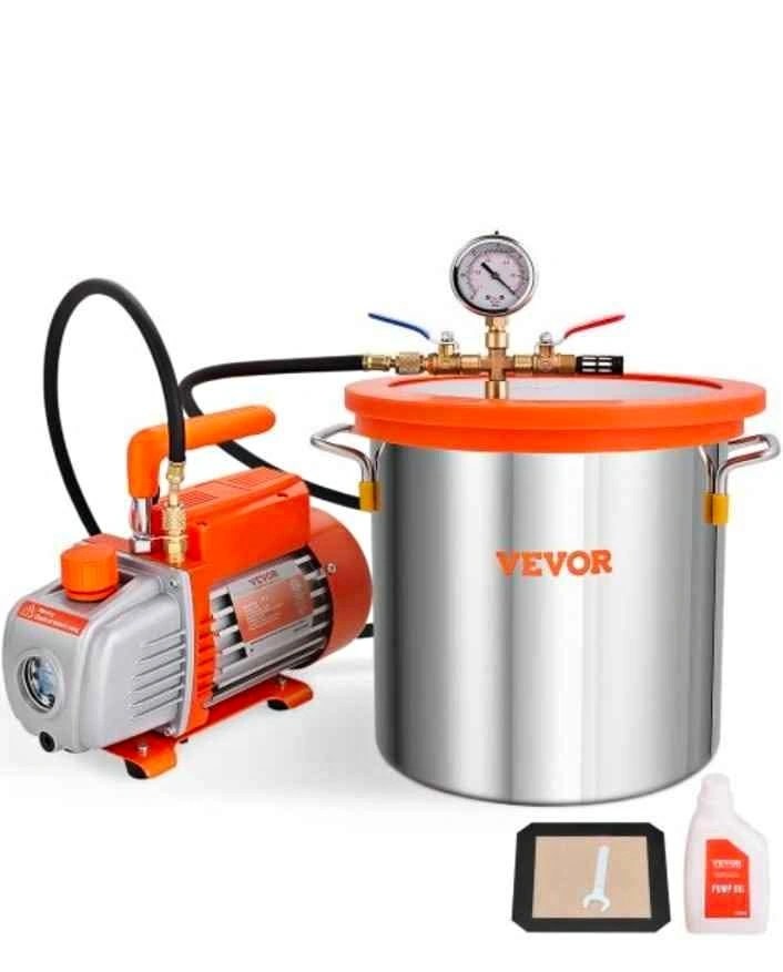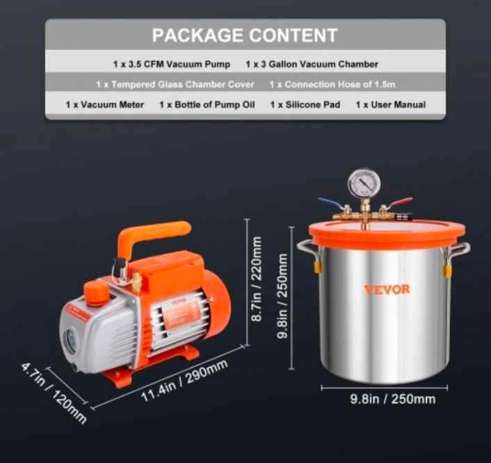 VEVOR 3 Gallon Vacuum Chamber and 3.5 CFM Pump Kit, Tempered Glass Lid Vacuum Degassing Chamber Kit, Single Stage Vacuum Pump with 250 ml Oil Bottle, for Stabilizing Wood, Degassing Silicones, Epoxies