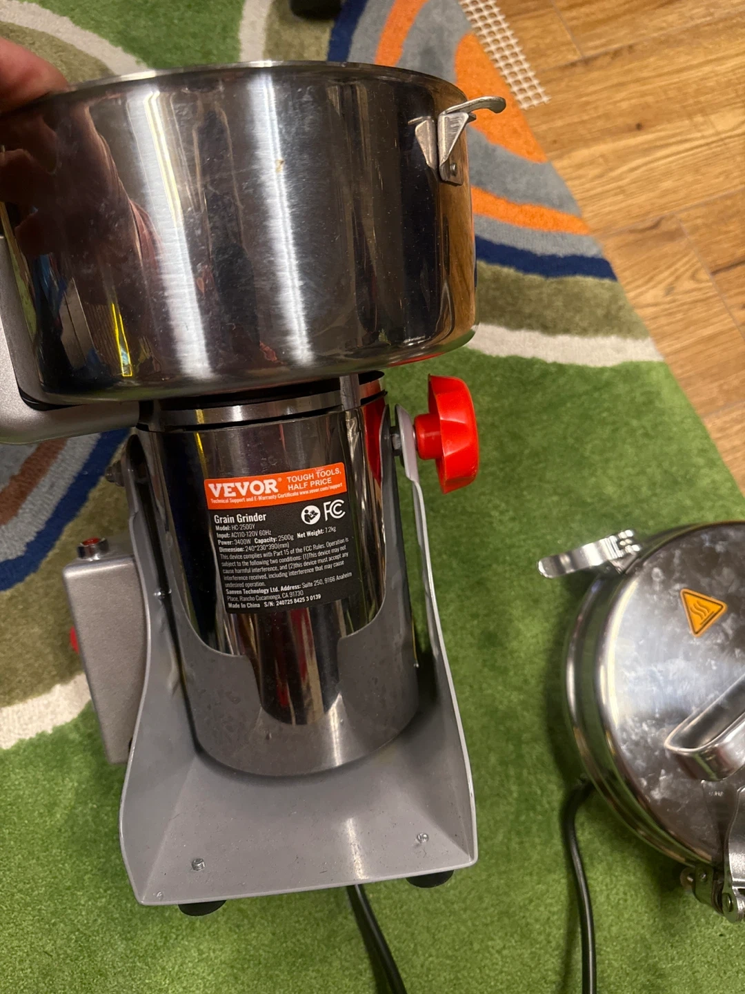 Selling a VEVOR grain grinder in great condition! It's made of stainless steel and is perfect for grinding grains and spices. It's a powerful machine that operates at 25000r/min with a motor power of 2200W. It has a capacity of 700g and a net weight of 1.2kg. Great for home or commercial use!