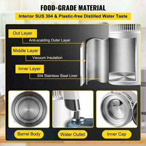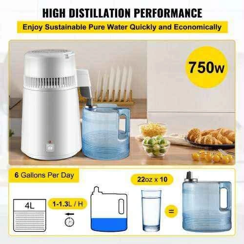 VEVOR Pure Water Distiller 750W, Purifier Filter Fully Upgraded with Handle 1.1 Gal /4L, BPA Free Container, Perfect for Home Use, White