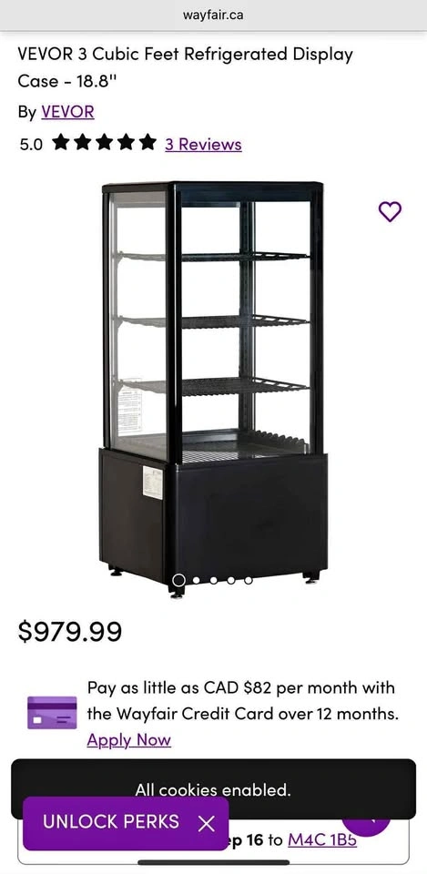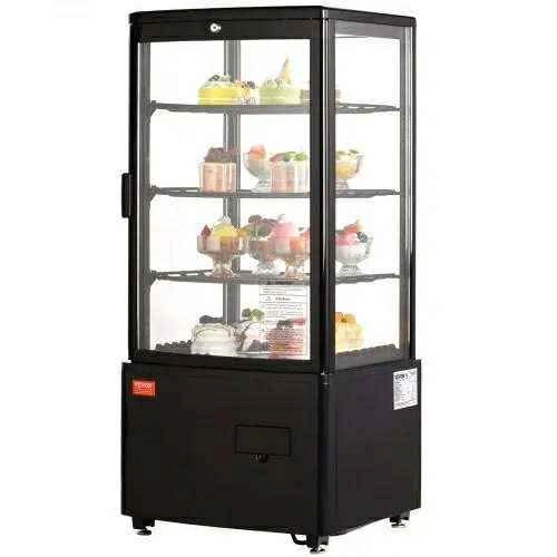 VEVOR Refrigerated Display Case, 3 Cu.Ft./85L, 3-Tier, Countertop Pastry Display Case Commercial Display Refrigerator with LED Lighting, TURBO Cooling, Frost-Free Air-Cooling, Locked Door for Bakery