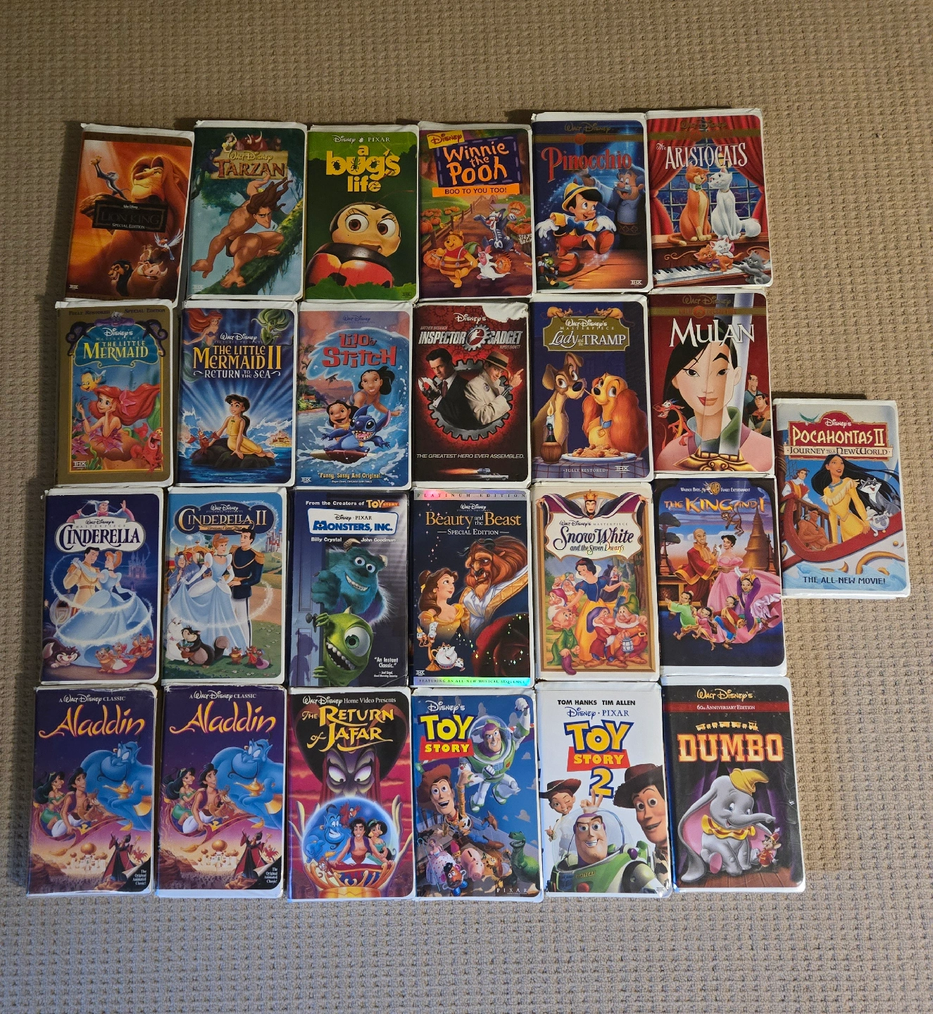 Selling a collection of VHS tapes, including Disney classics, comedies, and kids movies! Great for collectors or anyone looking for a bit of nostalgia. Titles include Disney favourites like Aladdin, The Little Mermaid, and Toy Story, as well as comedy classics and other family-friendly films. All in good condition!