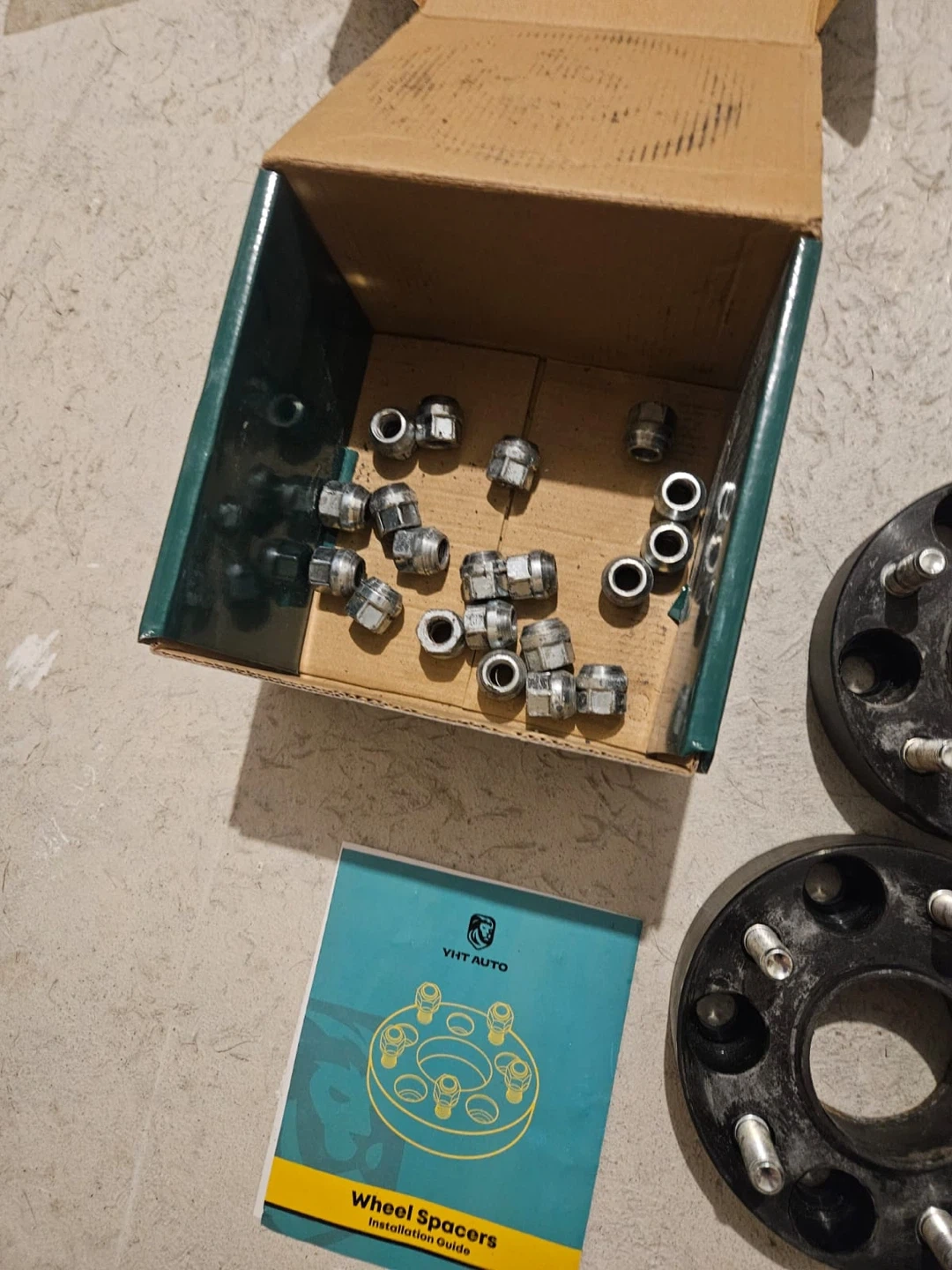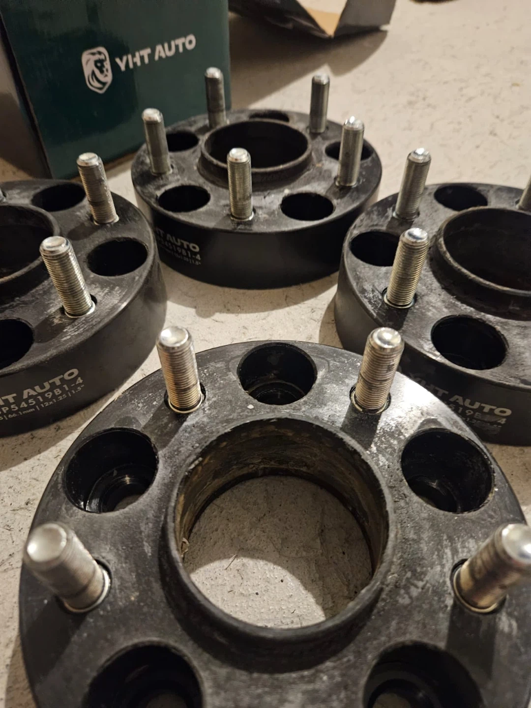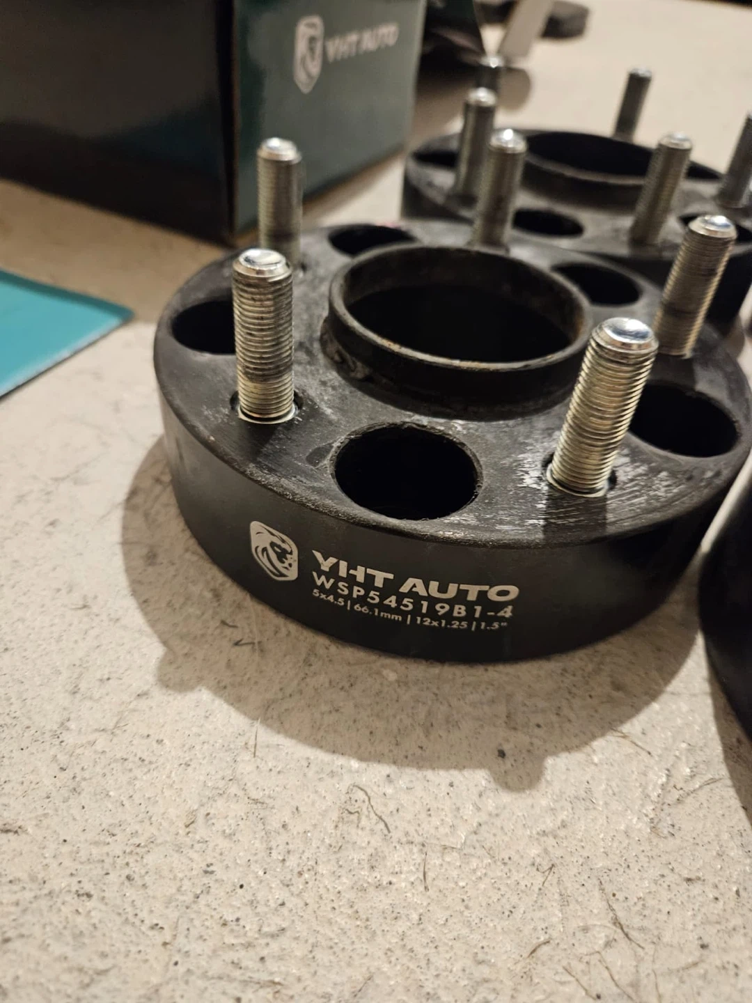 Selling a set of VHT Auto wheel spacers. They come with the original box and an installation guide. The model number is WSP54519B1-4. Dimensions are 5x4.5 | 66.1mm | 12x1.25 | 1.5".