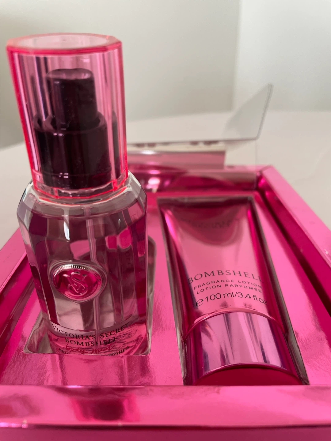 Selling a brand new Victoria's Secret Bombshell Mist & Lotion set! It includes a 75ml/2.5 fl oz body mist and a 100ml/3.4 fl oz fragrance lotion. The set comes in its original box, perfect as a gift or for yourself. Pickup only.