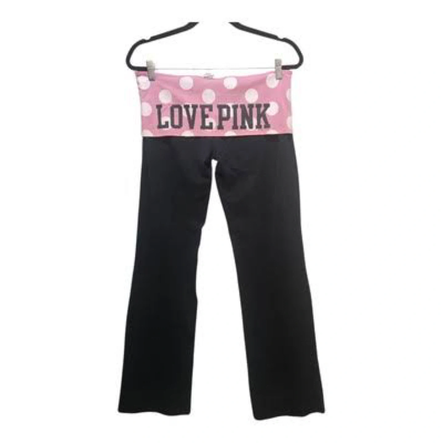 Victoria's Secret LOVE PINK yoga pants in great condition! These pants feature a black colour with a pink and white polka dot waistband. Super comfy for lounging or working out