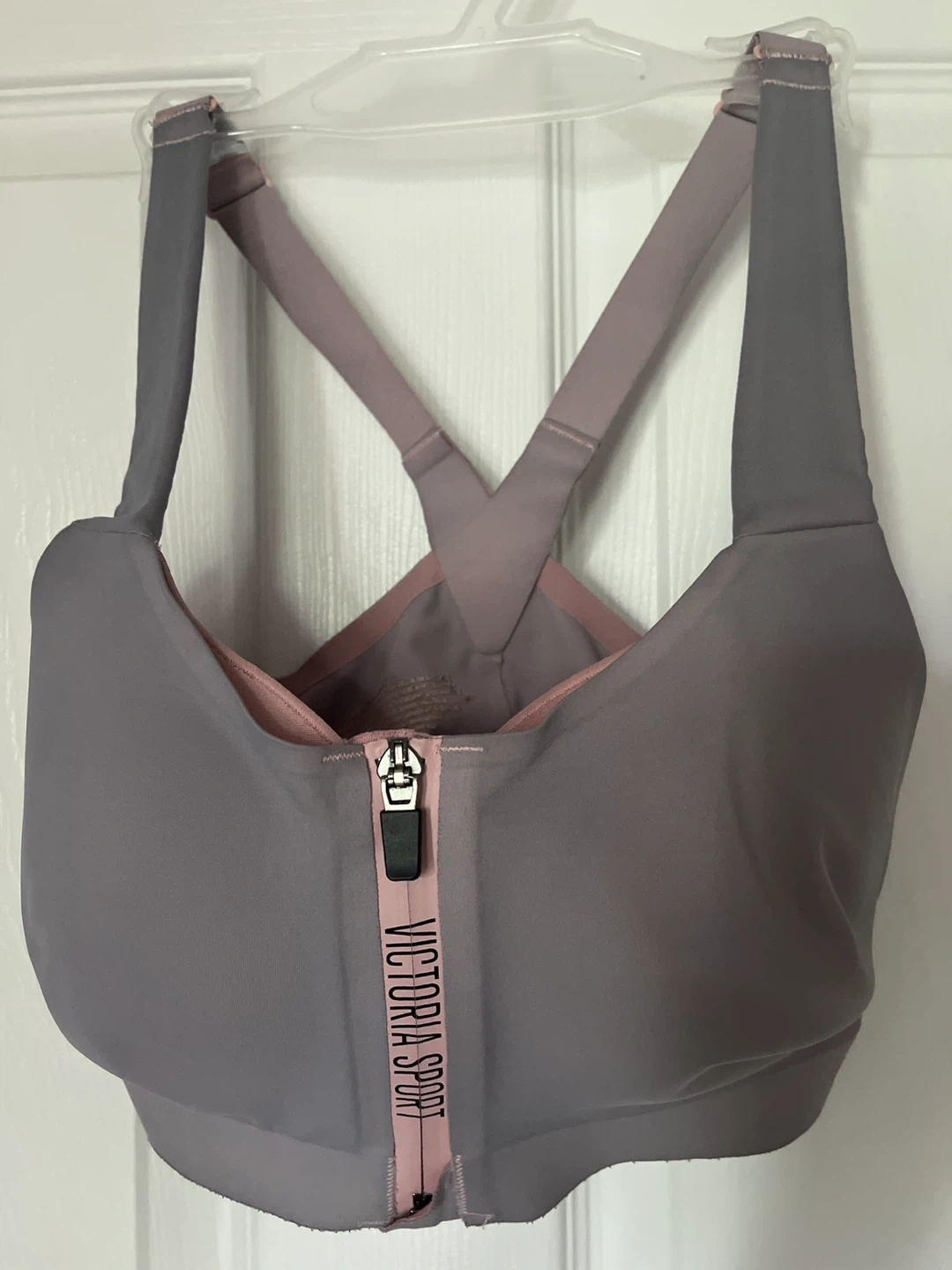Victoria's Secret sports bra in a lovely grey and pink colour combo! Perfect for your workouts or just lounging around. It's in great condition and ready for a new home