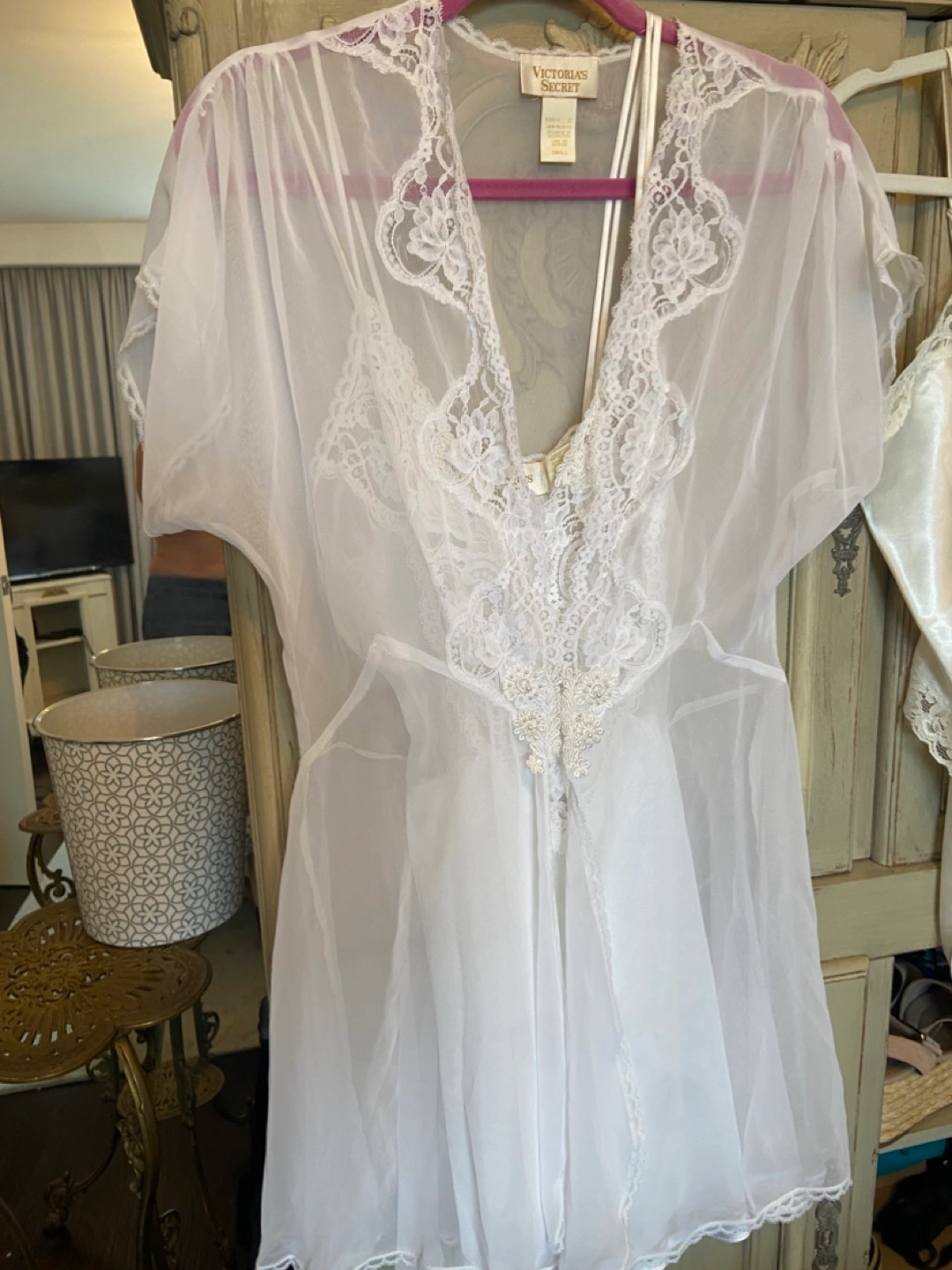 Selling a lovely 2 piece white lingerie set from Victoria's Secret! It's a size small and features delicate lace detailing. Perfect for adding a touch of elegance to your wardrobe! Worn once!