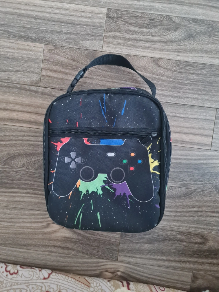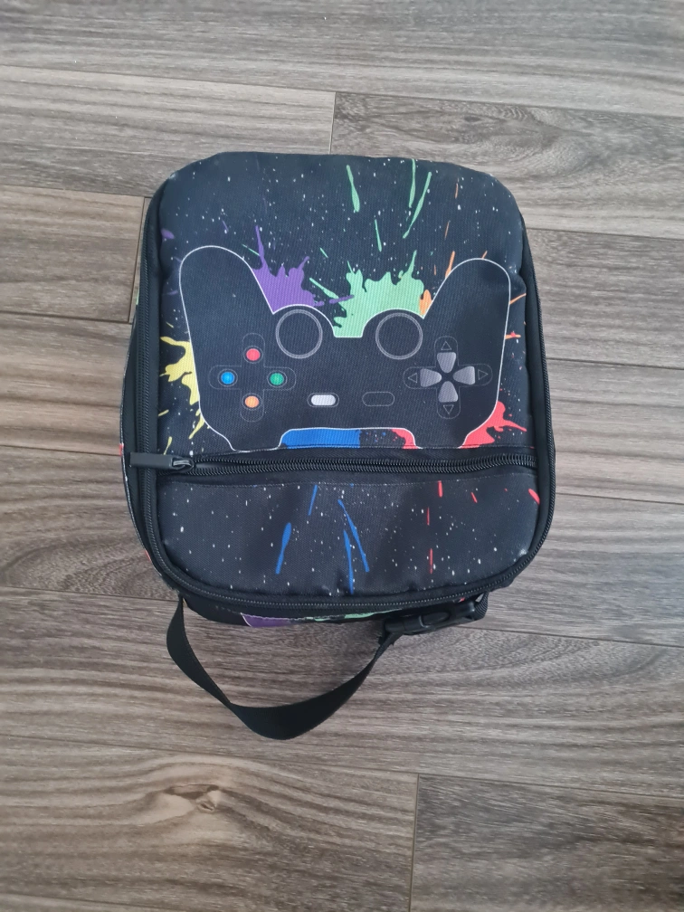 Cool lunch bag with a video game controller design! Perfect for kids new academic year. It's in great shape and ready for a new home
