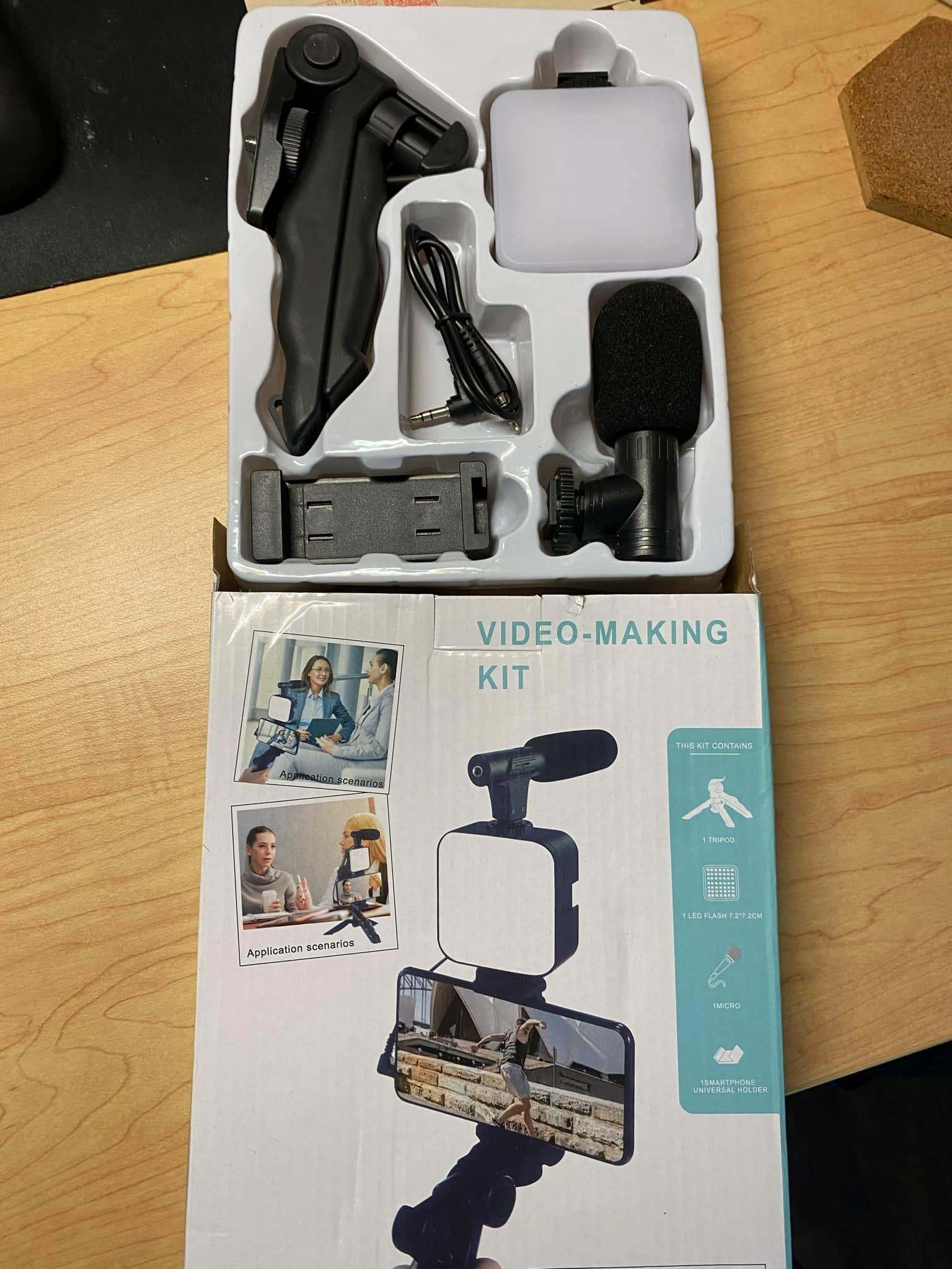 Brand new video-making tripod for a beginner that's interested doing simple videos. It comes with a microphone, a cable to connect to the phone, a battery-operated light and a short tripod. Pickup from Trinity Western University in Langley or near Abbotsford's Canadian Superstore. Accept cash only.