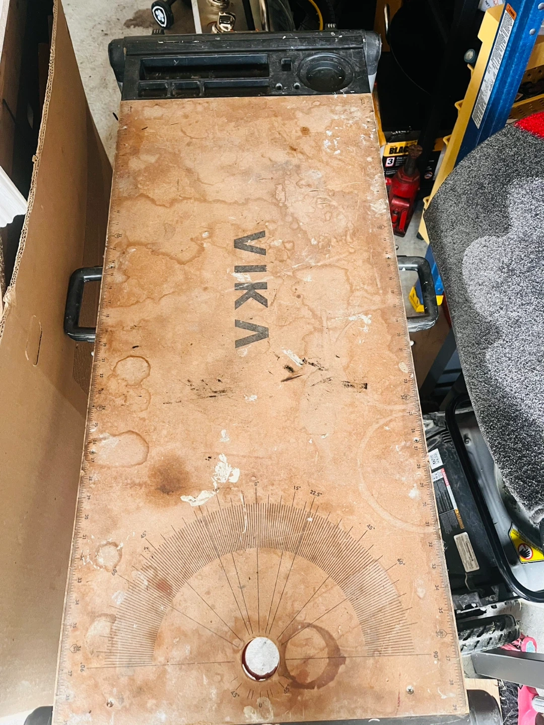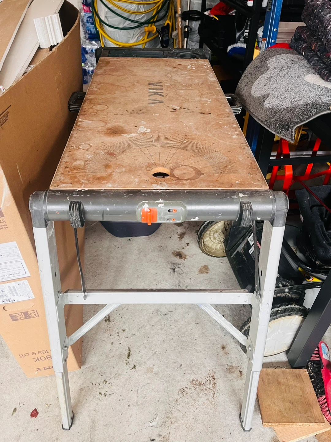 Selling a VIKA work bench. It's a sturdy and reliable workbench, perfect for DIY projects and woodworking. It has a durable surface and a built-in measuring guide for precision. This bench is ready to help you tackle any task!