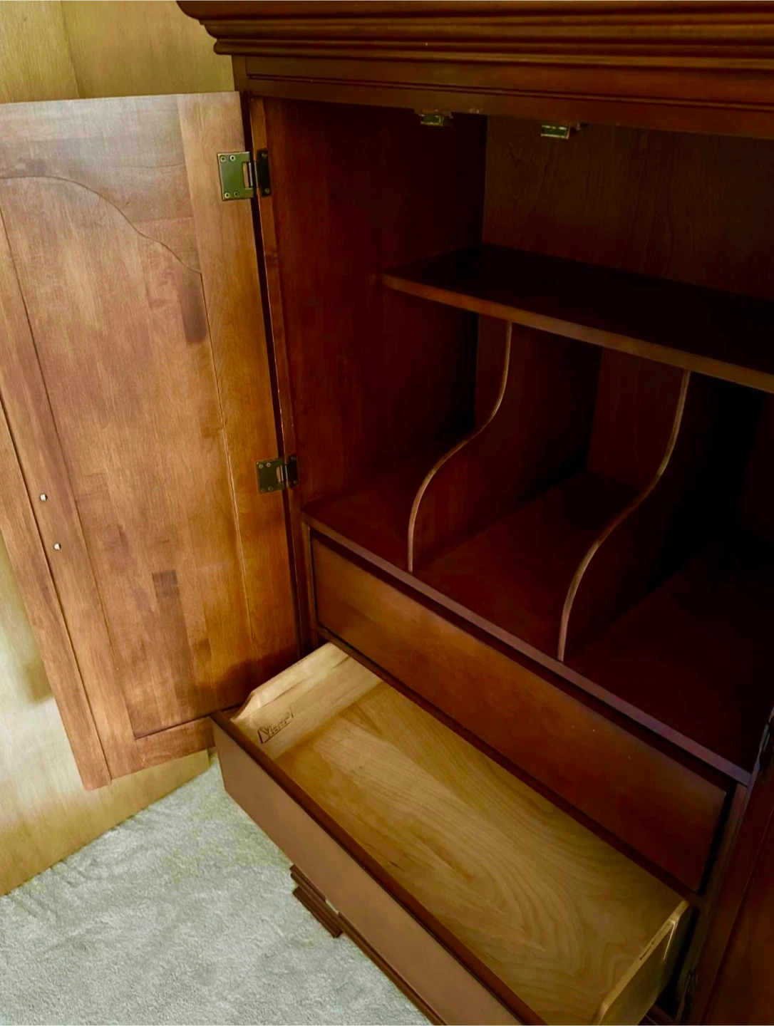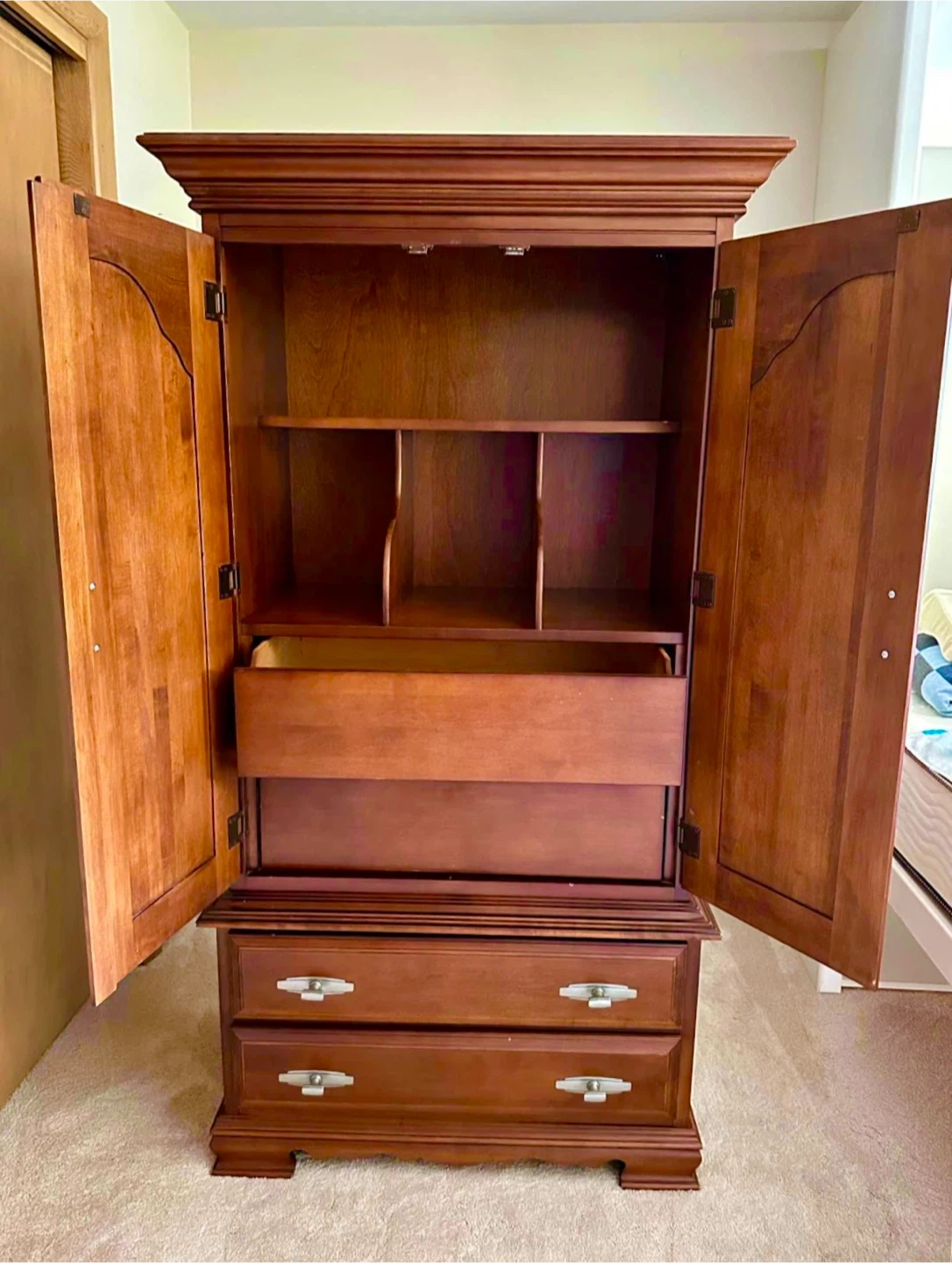 Selling a lovely wooden dresser from Vilas Canada! It features a beautiful design with drawers and shelving for ample storage. Perfect for adding a touch of classic Canadian craftsmanship to any room Vilas Dresser - Canadian All Wood - Genuine Vilas Dresser - Made in Canada - All Wood construction - Fantastic condition - Dimensions: 65"h x 34.5w x 19.5 d - Smoke free, pet free