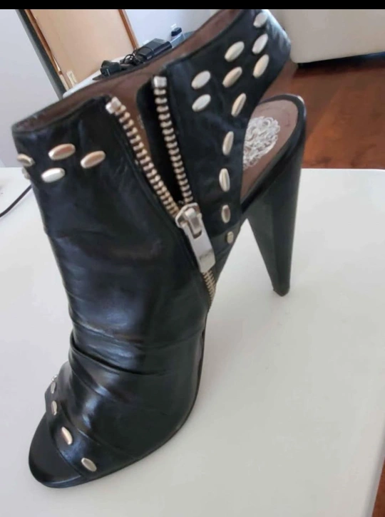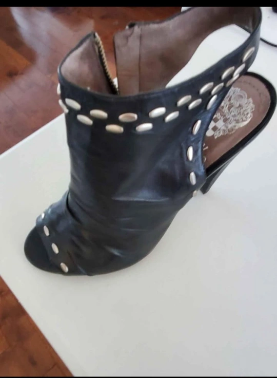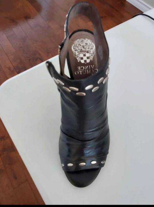 Selling a pair of Vince Camuto black 4" heal, soft genuine leather, also lining and soles are leather. They're in great condition, and have a stylish design with silver accents and side zipper. The size is 7.5.Only worn once. Asking $35.00 pick up in Burlington
