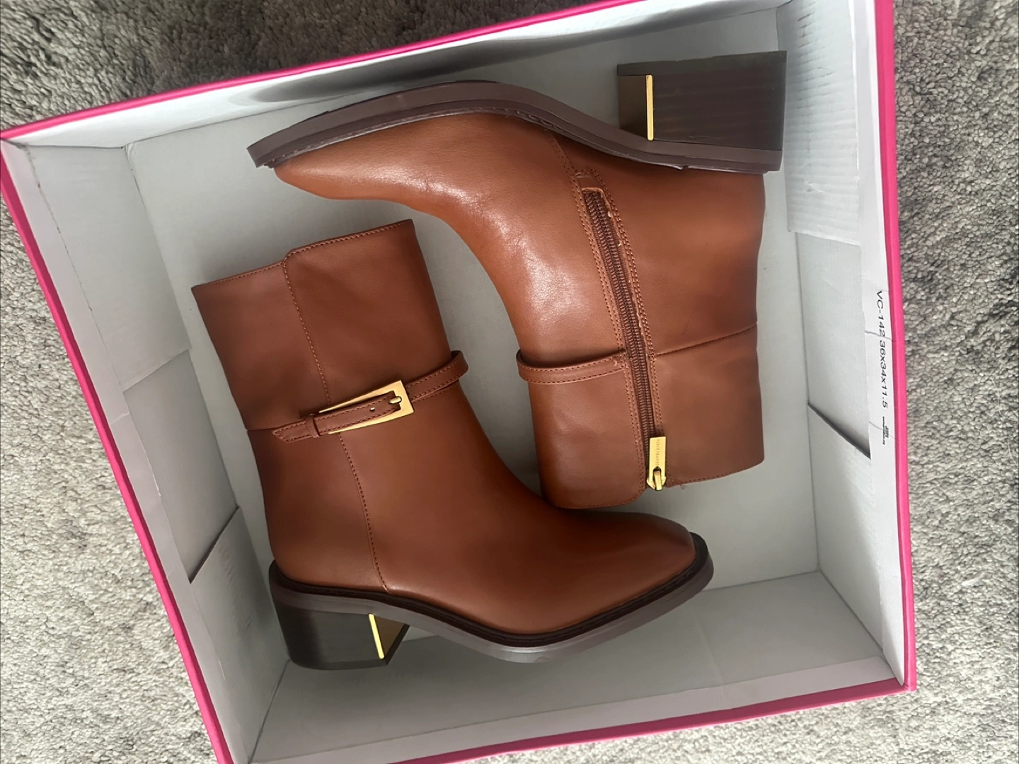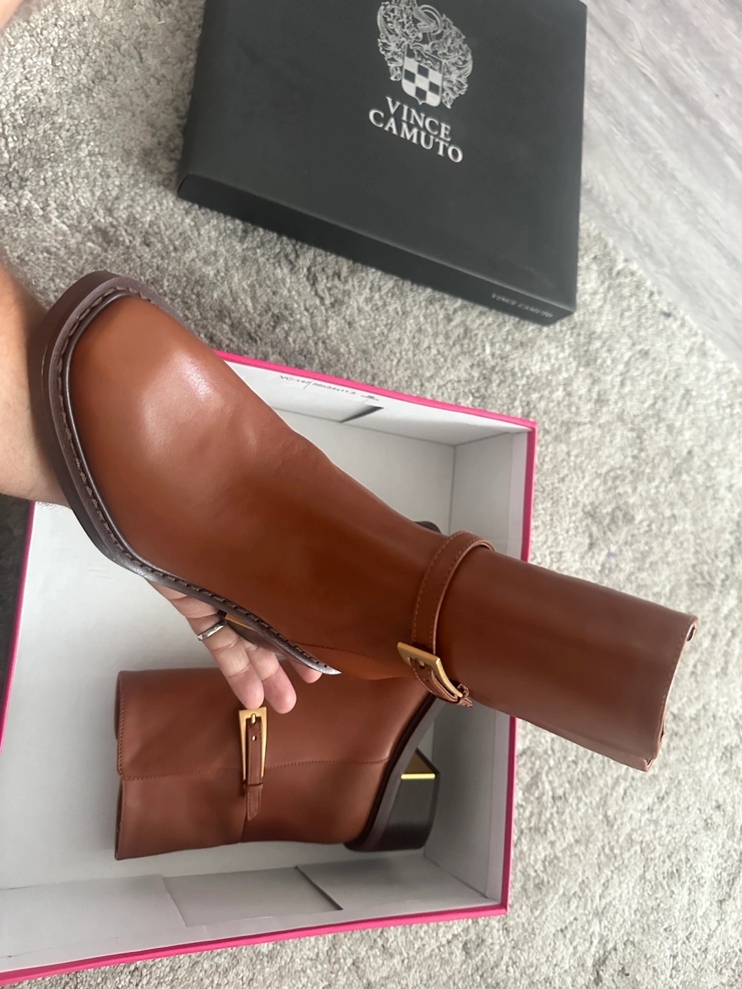 These Vince Camuto ankle boots are brand new never worn! They're a beautiful brown leather with a stylish buckle detail. Perfect for adding a touch of class to any outfit