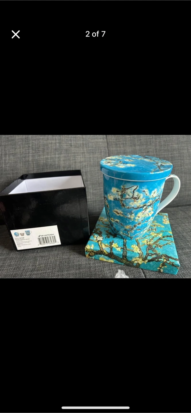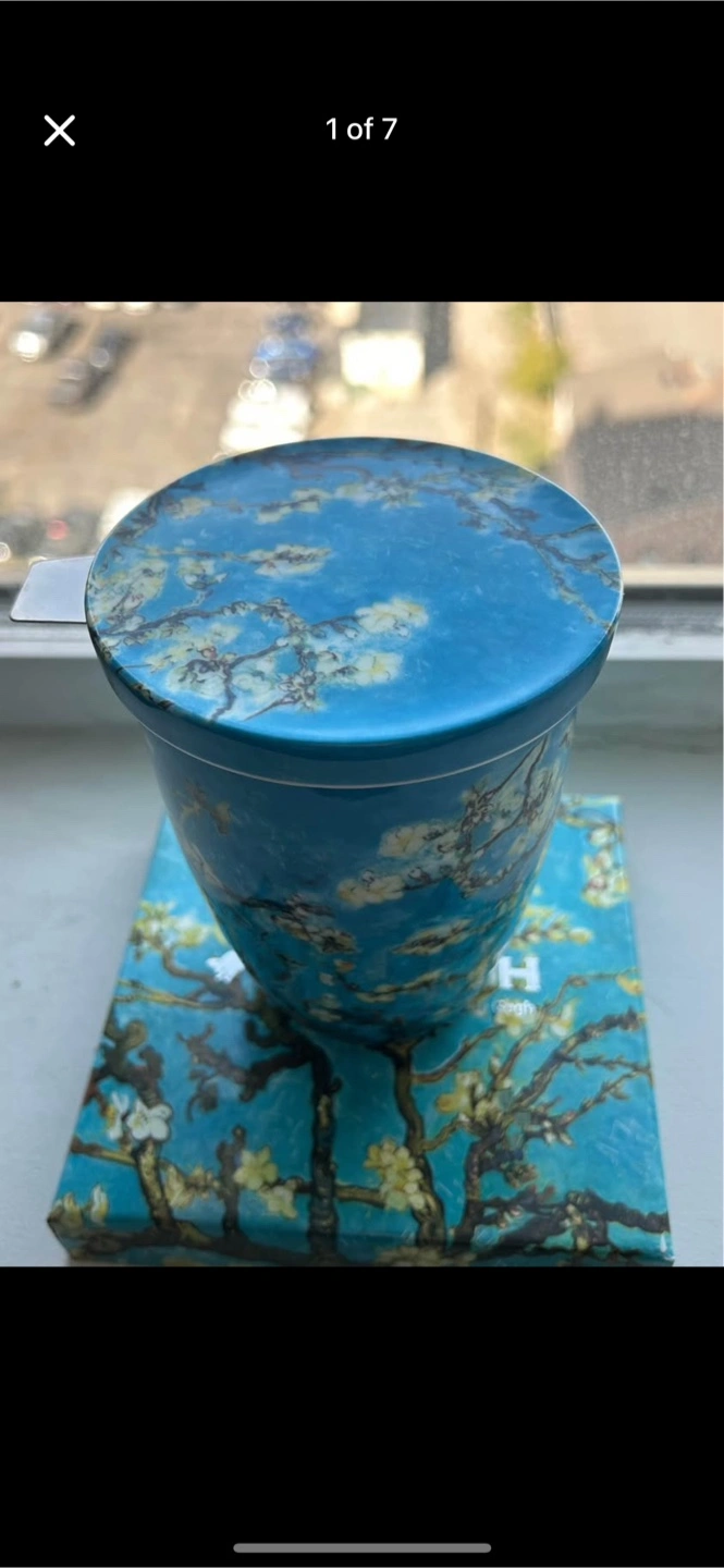 Brand new never been used old masters almond blossom Vincent Van Gogh tea mug with strainer and lid Pickup in douglasdale