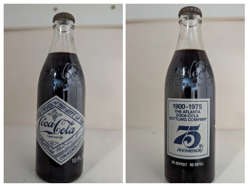 Selling a vintage Coca-Cola commemorative bottle from 1900-1975. It celebrates the Atlanta Coca-Cola Bottling Company's 75th Anniversary. This has been sitting in storage a while, figured a Coke collector might want it.