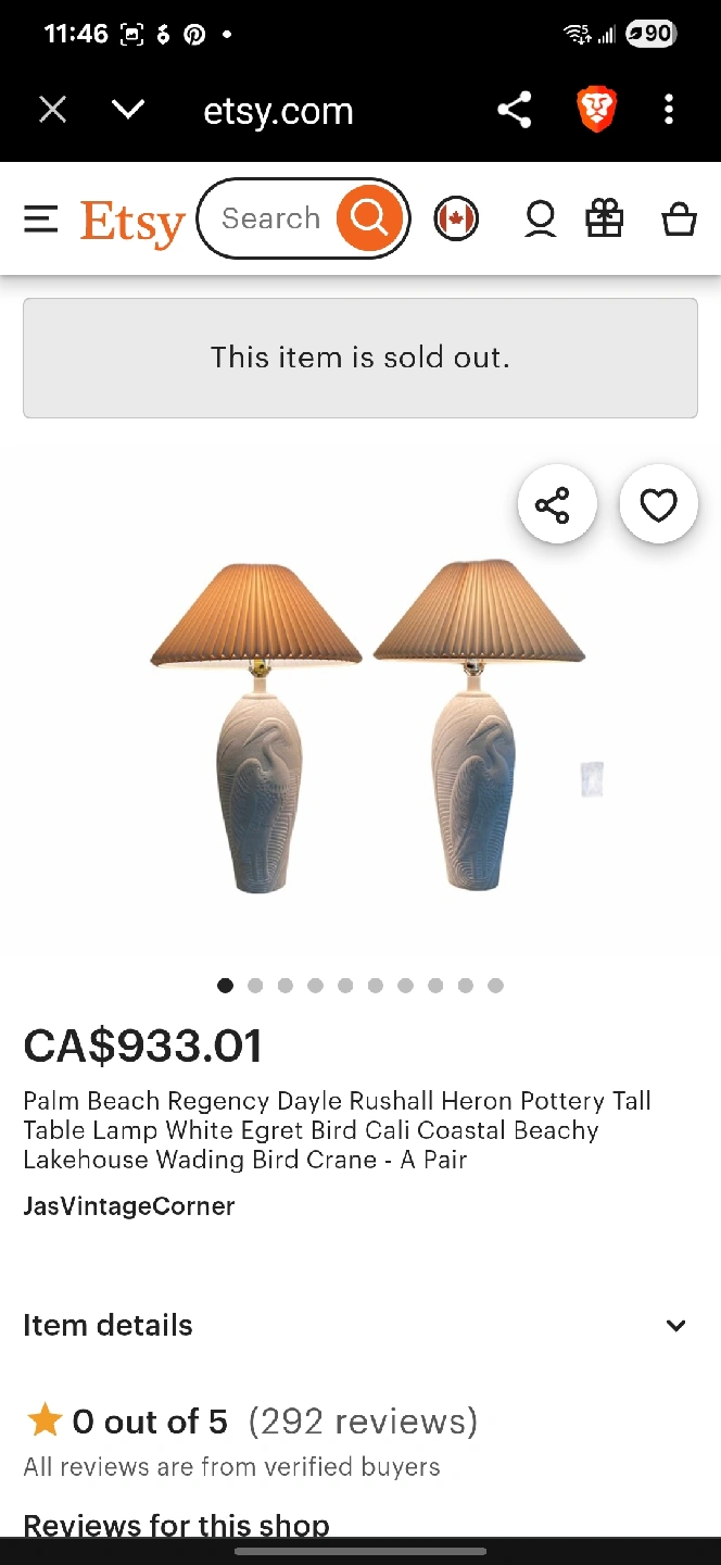 Show allVintage 1970s Dayle Rushall Palm Beach Heron Coastal Lamp.