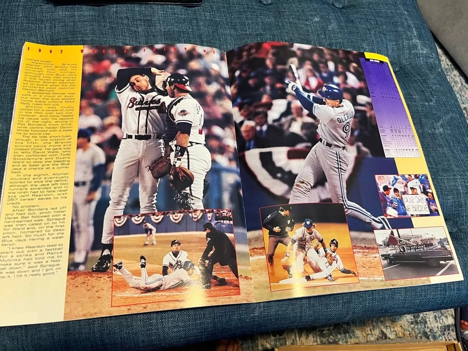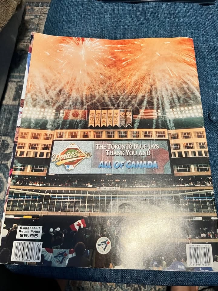Selling a vintage, oversized commemorative book celebrating the Toronto Blue Jays' historic 1992 World Series championship. Written by Scott Morrison, this book is filled with stunning full-page photos and detailed write-ups from the championship season and the World Series itself. Key Features: A piece of history: Captures the excitement of the Blue Jays' first-ever World Series win, a major moment in Canadian sports history. High-quality photos: Includes action shots, team photos, and candid moments from the locker room and on the field. Great condition: The book is in excellent condition, with a clean and vibrant cover. It has been well-preserved for over 30 years. Perfect for fans and collectors: A must-have for any loyal Blue Jays fan, a collector of sports memorabilia, or anyone who wants to relive the glory of the early 90s. This is a fantastic item to display on a coffee table or to add to a collection. Feel free to message me with any questions. Local pickup preferred.